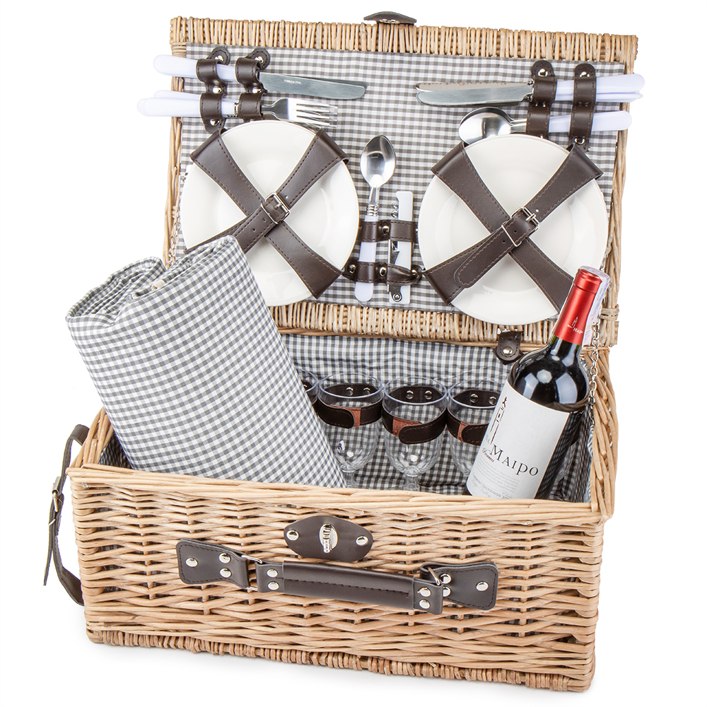 Кошик для пікніка - ідеальний варіант для подарунка, адже він практичний і неймовірно естетичний. Кошик досить просторий і містить 6 наборів посуду! Це ідеальний варіант для великої родини чи компанії друзів. Ви можете також розмістити необхідну їжу та напої. Кошик для пікніка не тільки гарний і прикрасить Ваше свято, але й екологічний, безпечний для навколишнього середовища.