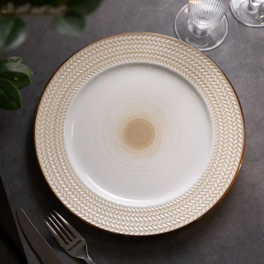 Эта изысканная обеденная тарелка диаметром 26 см станет элегантным дополнением к вашему обеденному сервизу. Она прекрасно подойдет для сервировки основных блюд, таких как мясо, рыба, птица, а также паста, ризотто, овощи и другие гарниры. Основные преимущества керамической тарелки: Прочность: Керамика является прочным материалом, который не царапается и не разбивается от незначительных ударов. Удобство в уходе: Керамические тарелки можно мыть в посудомоечной машине, что делает их использование удобным и простым. Совместимость с микроволновой печью: Тарелки подходят для разогрева пищи в микроволновой печи, что увеличивает их функциональность. Универсальность: Эти тарелки можно использовать для самых различных целей, как в повседневной жизни, так и для особых случаев. Где купить обеденные тарелки? Вы можете приобрести обеденные тарелки и другие товары по доступным ценам с доставкой по Украине в нашем интернет-магазине.