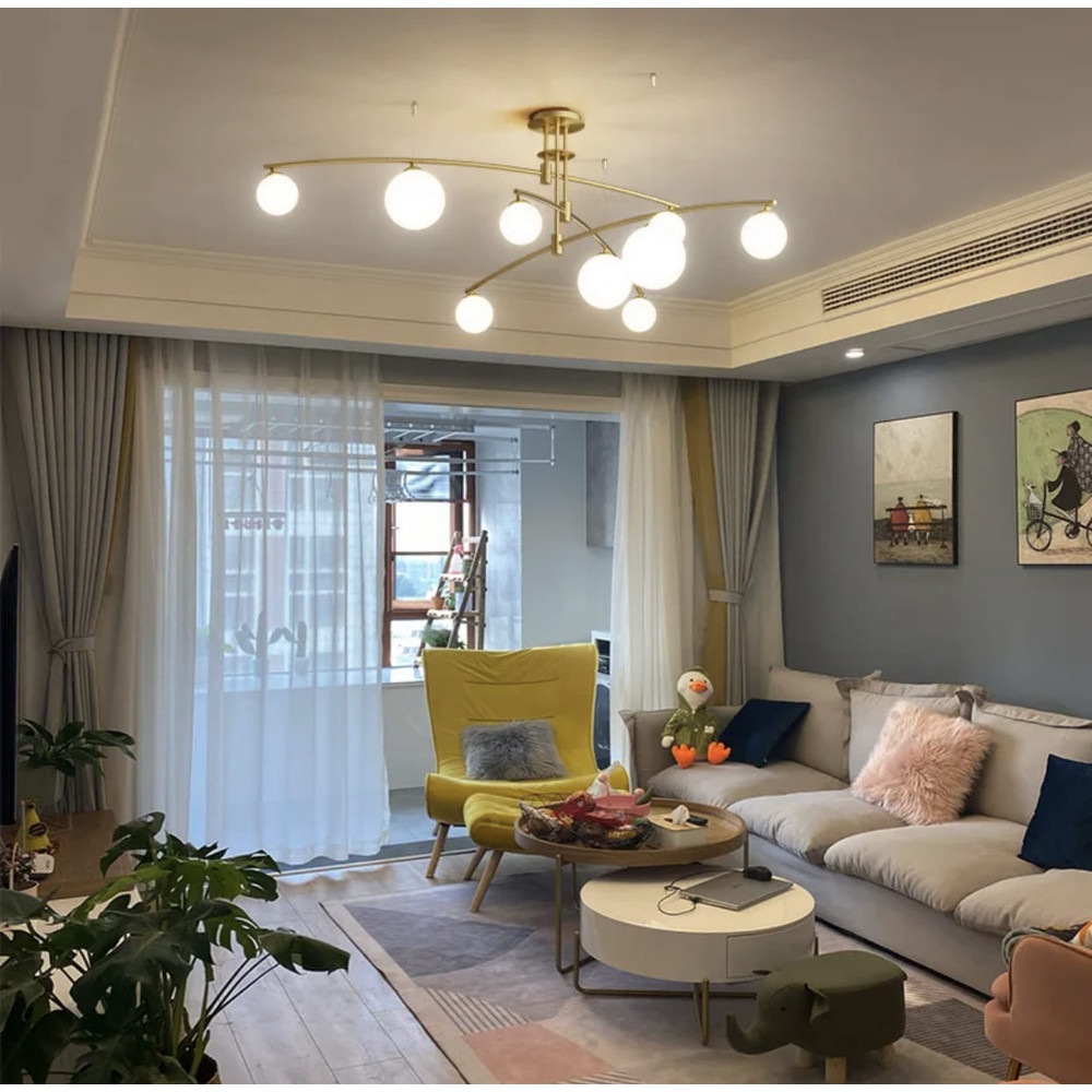 Модель представлена у двох кольорах корпусу: латунь або чорний на 9 матових плафонів