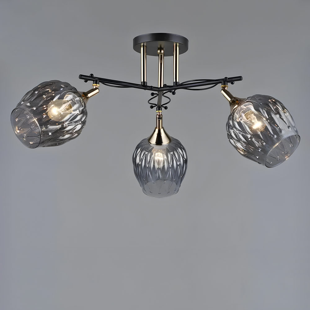 Стильна стельова люстра на три лампи зі скляними поворотними плафонами.