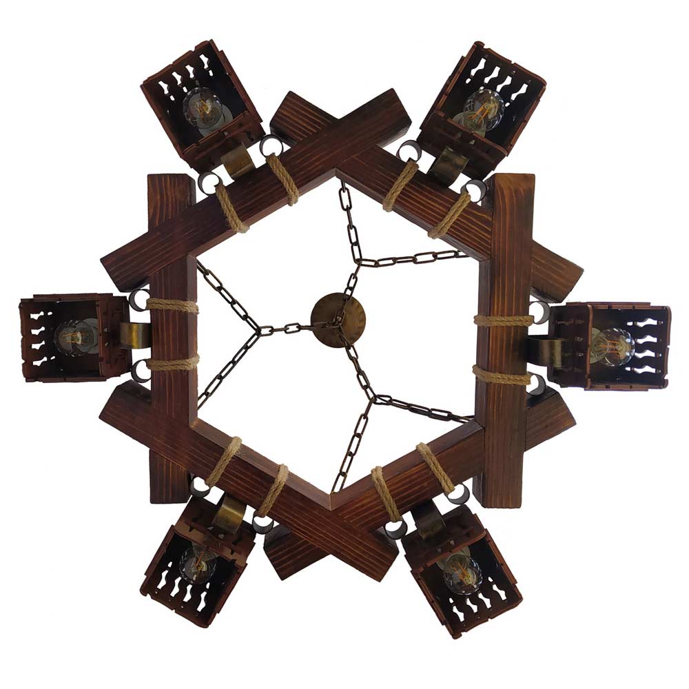 Люстра дерев'яна підвісна Light House LPR-20107/6P колір коричневий
