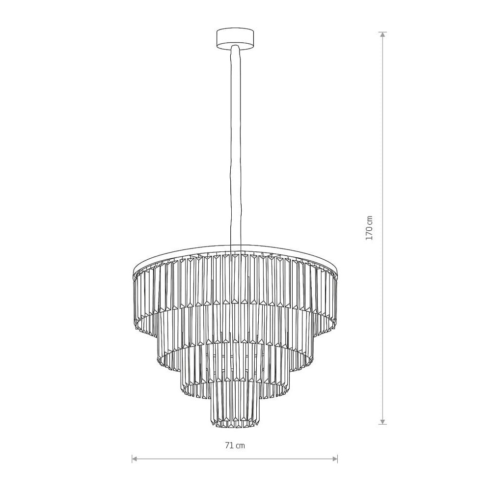 Висота складає 1700 мм, довжина – 710 мм, ширина – 710 мм. Обов'язково зважайте на площу кімнати для успішного підбору світильника.