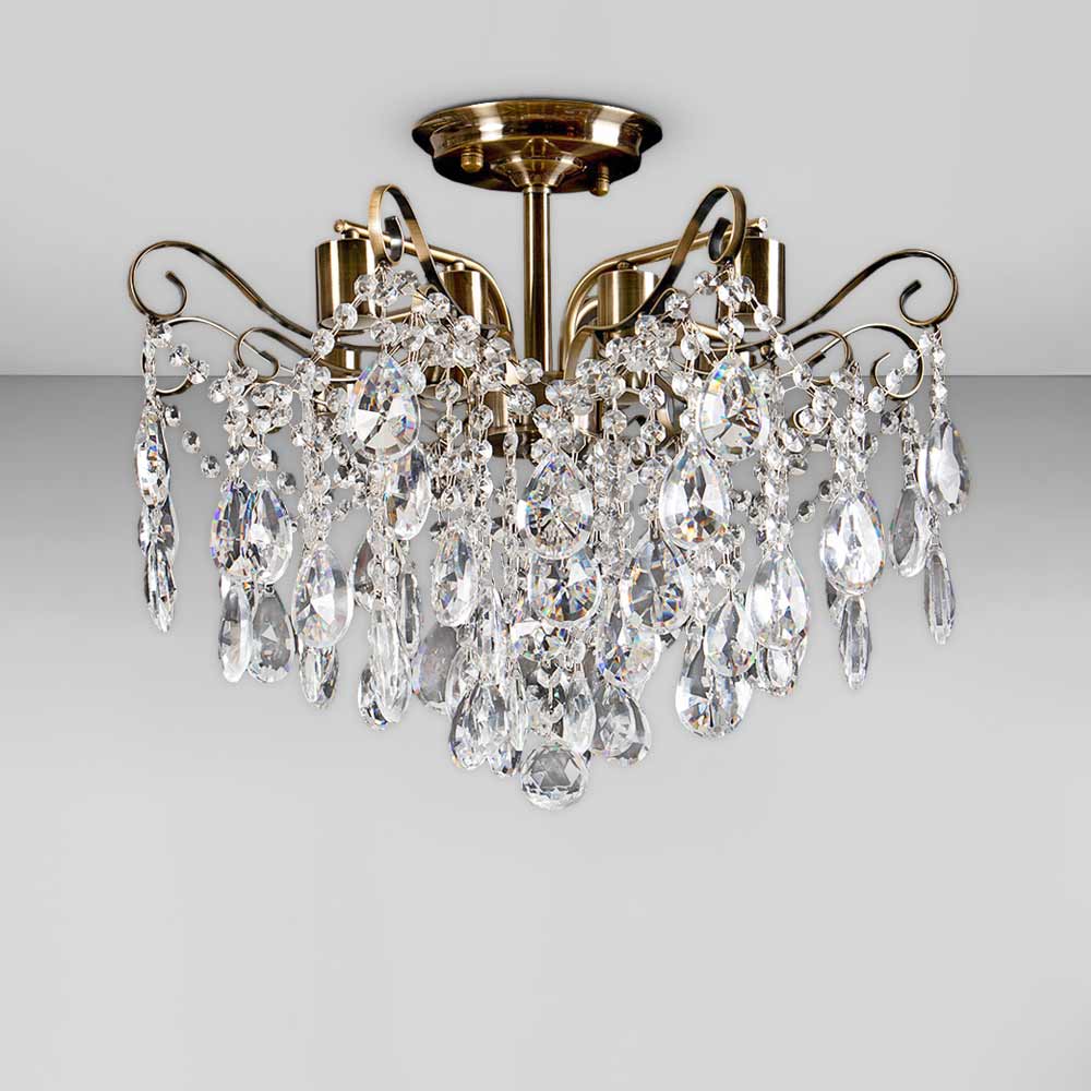 Класична стельова люстра на шість ламп з кришталевими підвісками.