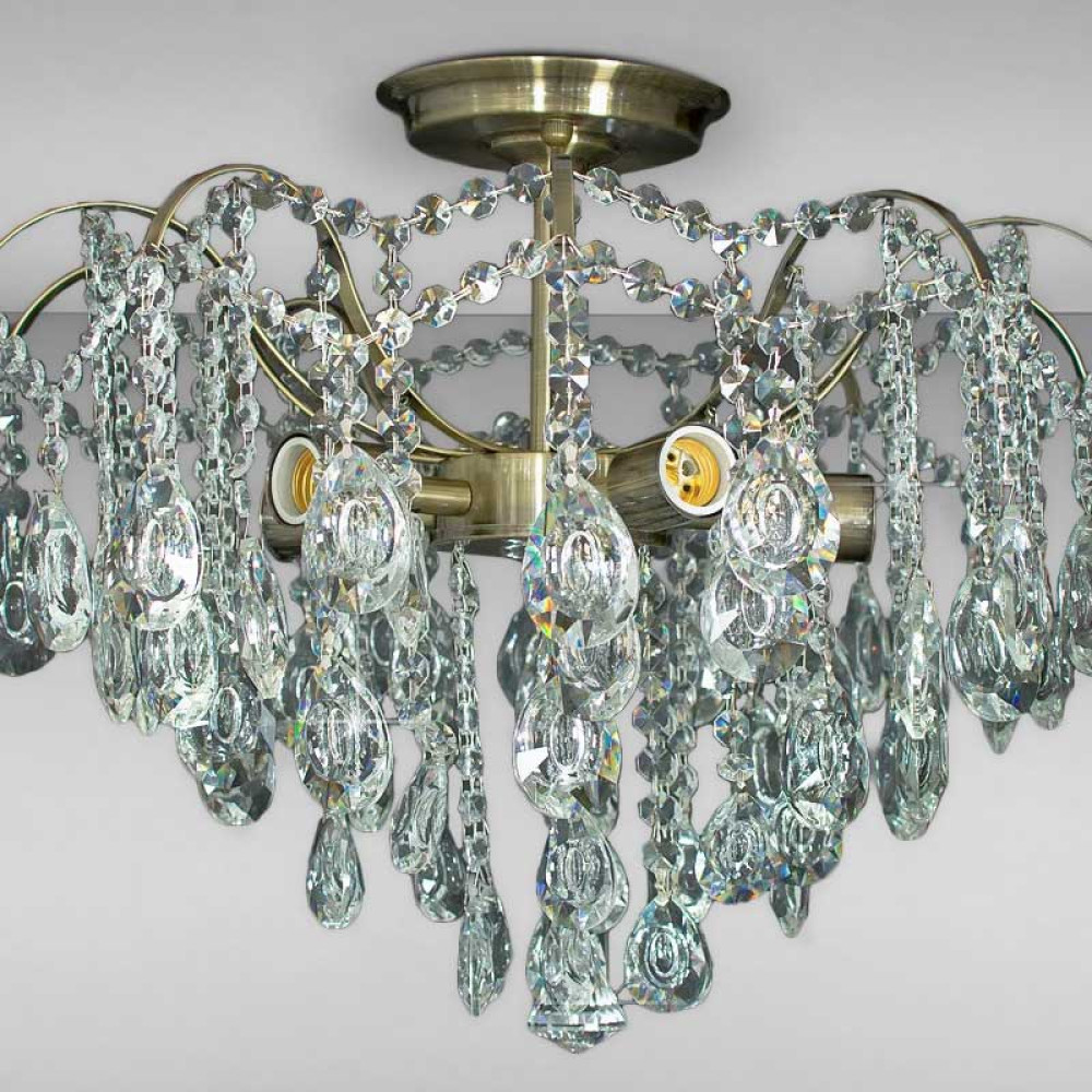 Стельова люстра в класичному стилі на п'ять ламп з кришталевими підвісками. Вона буде королевою вашої кімнати.