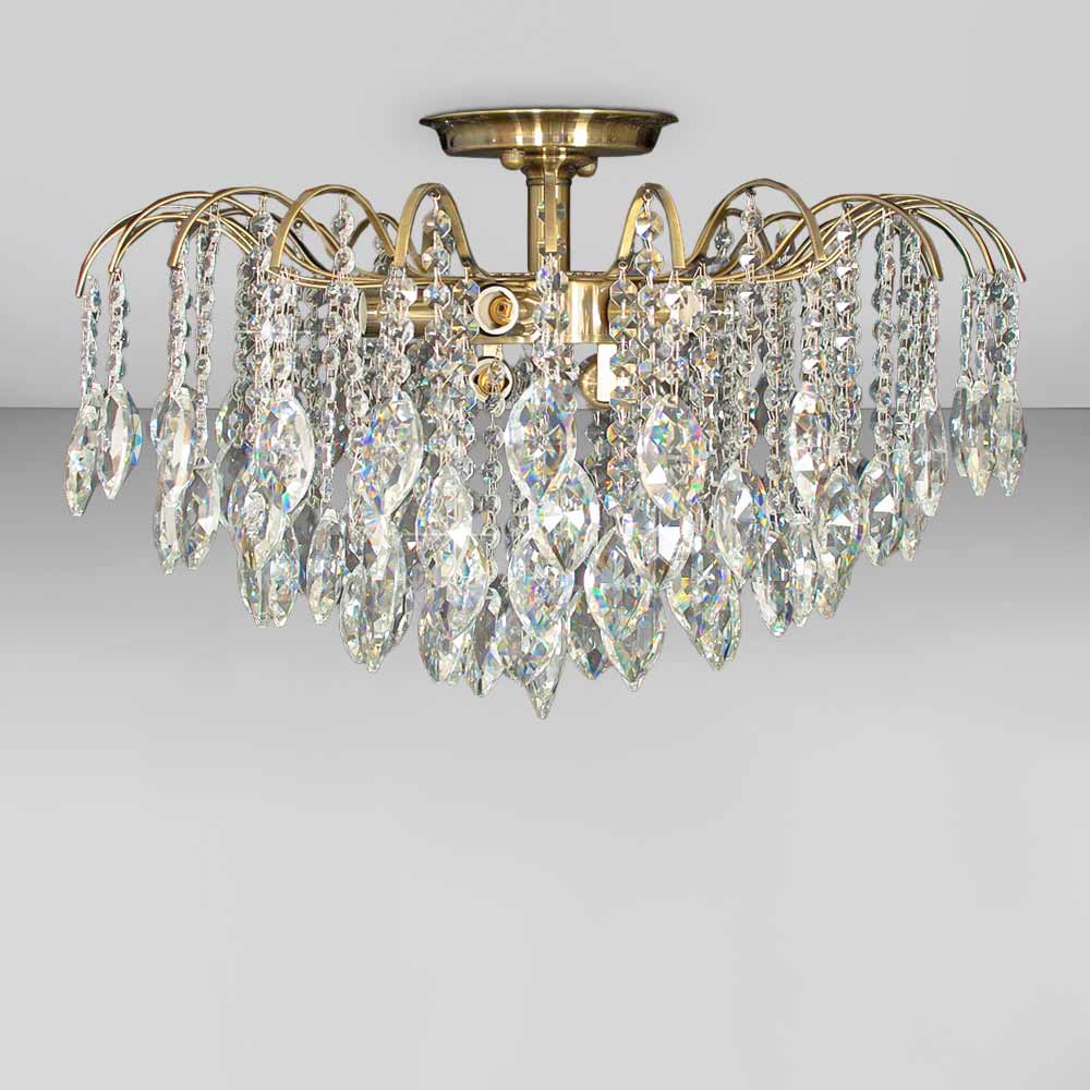 Класична стельова люстра на вісім ламп з кришталевими підвісками.