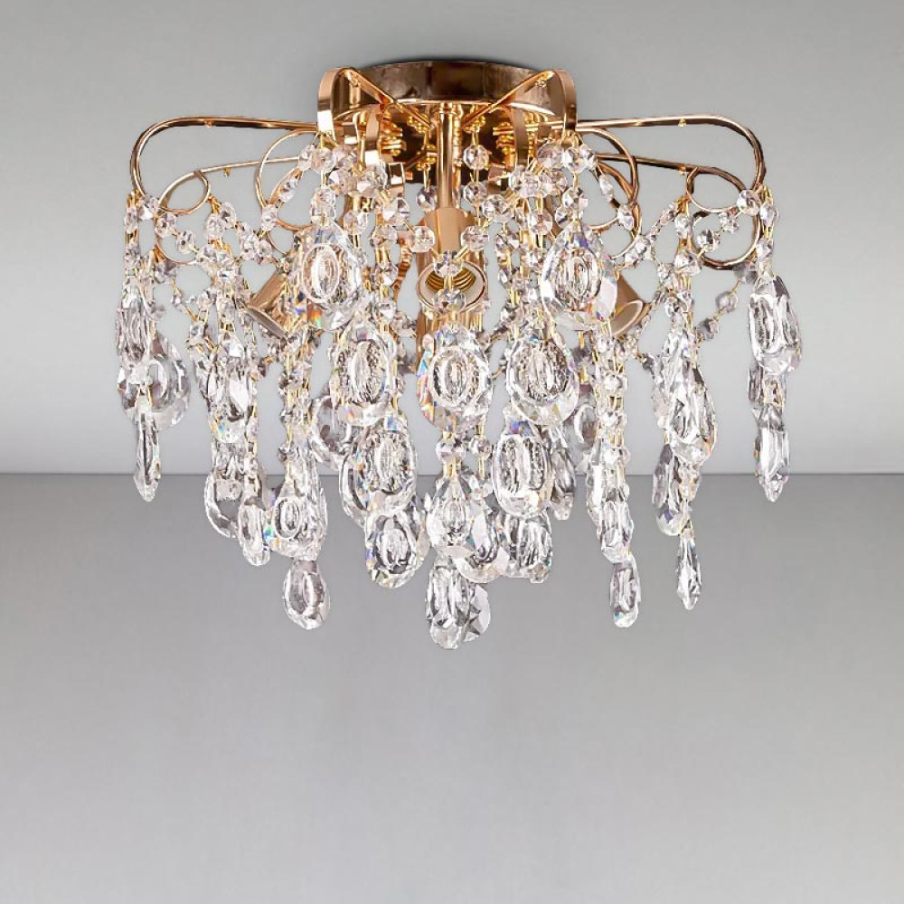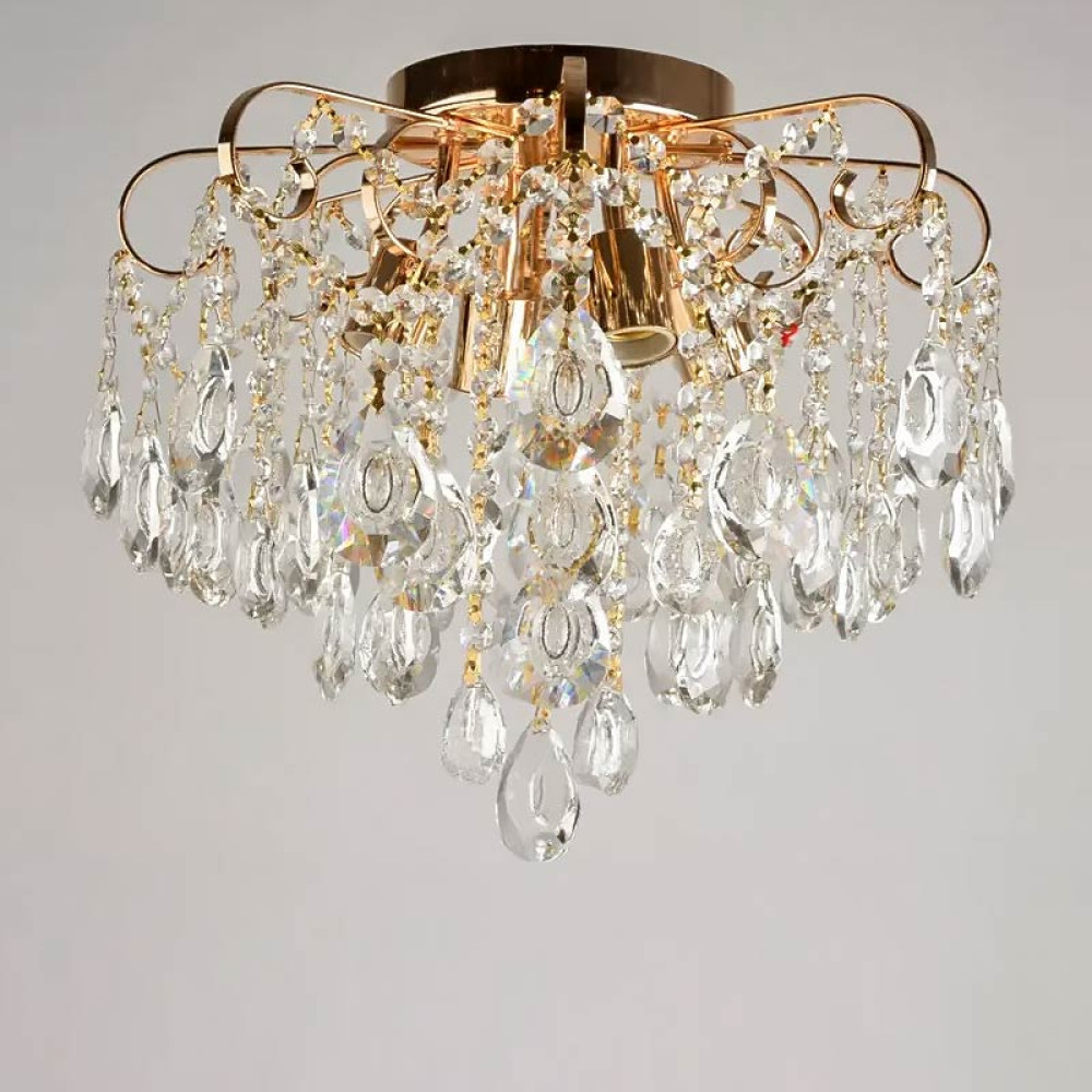 Припотолочна люстра в класичному стилі на чотири лампи з кришталевими підвісками.