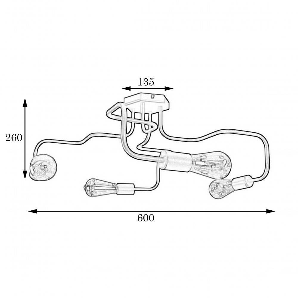 Стельова люстра-павук на чотири лампи без плафонів.