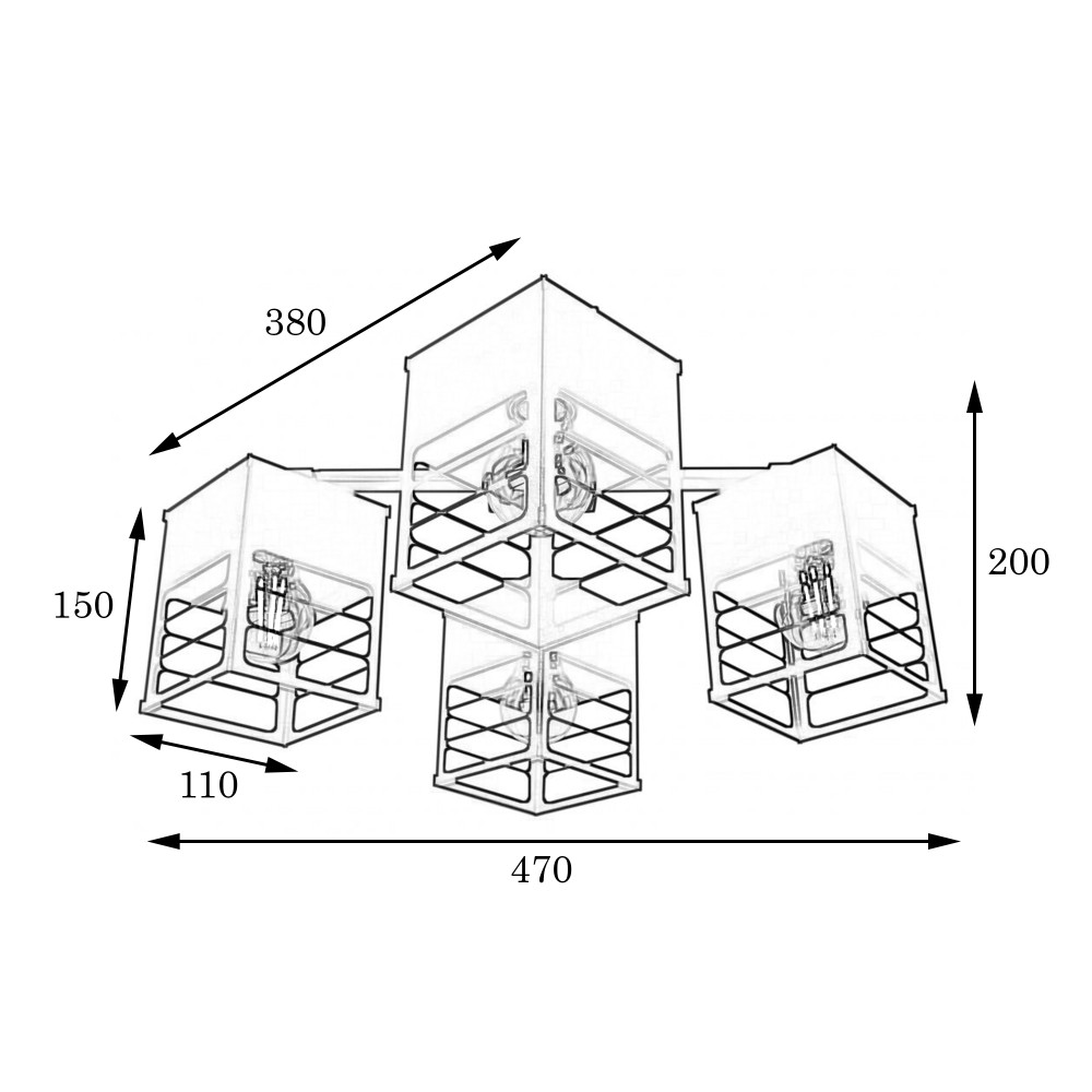 Тип цоколя: E-27 (стандарт)Кількість джерел світла: 4 (лампочки в комплект не входять)