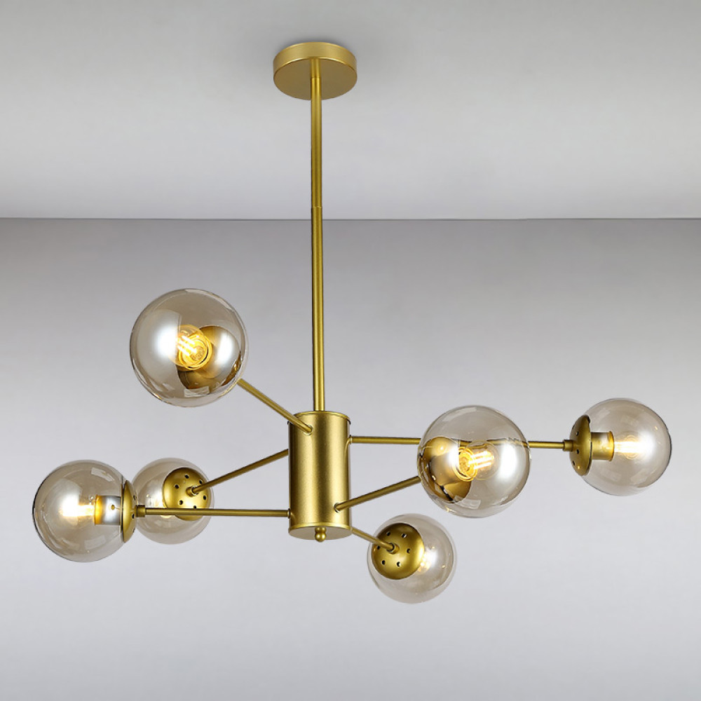 Немає відгуків про товар Люстра молекула стельова Light House LS-14858-6 GD+BR золото, плафон коричневий