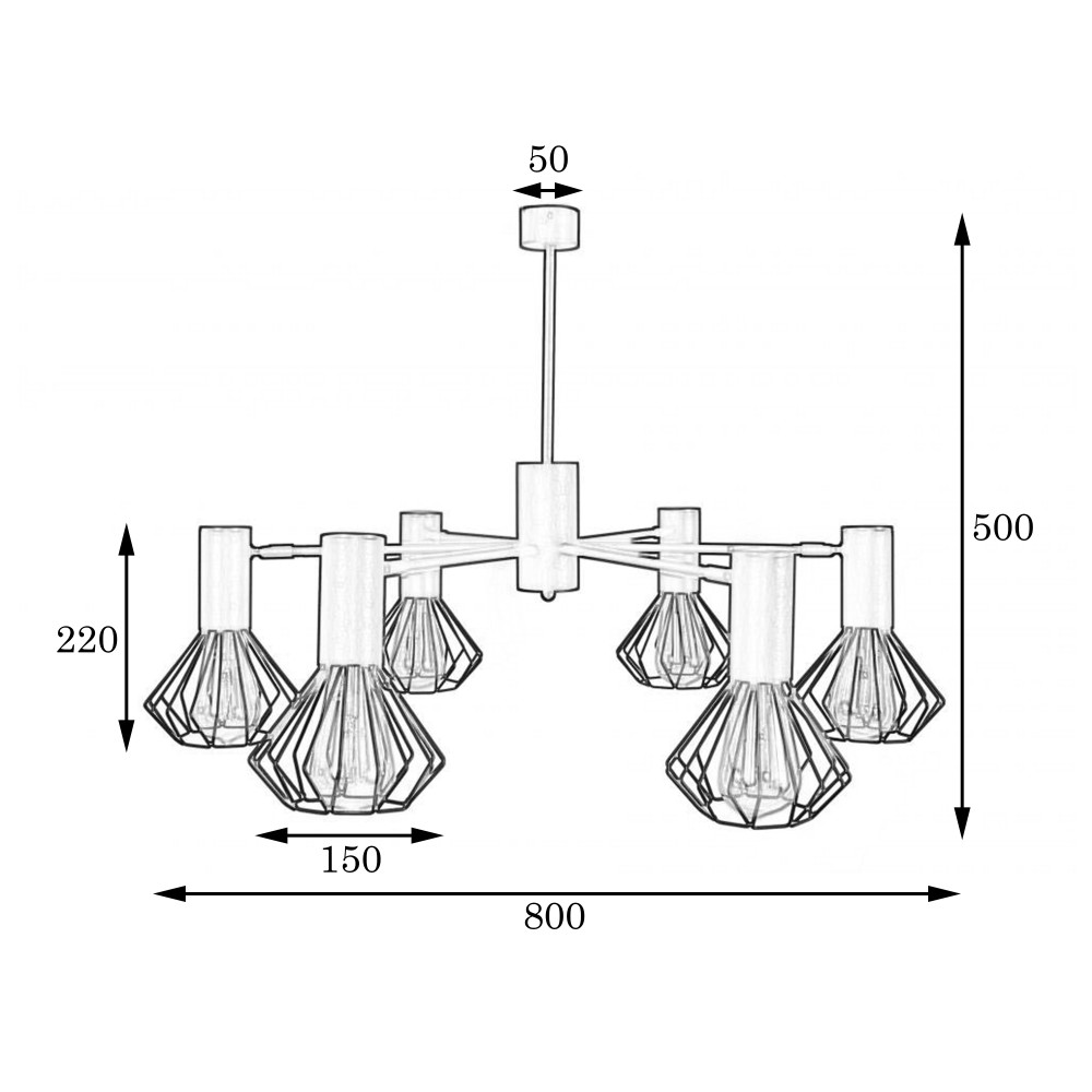 Тип цоколя: E-27 (стандарт)Кількість джерел світла: 6 (лампочки в комплект не входять)