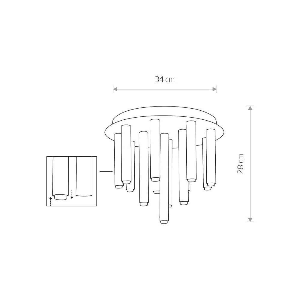 Висота складає 280 мм, довжина – 340 мм, ширина – 340 мм. Обов'язково зважайте на площу кімнати для успішного підбору світильника.