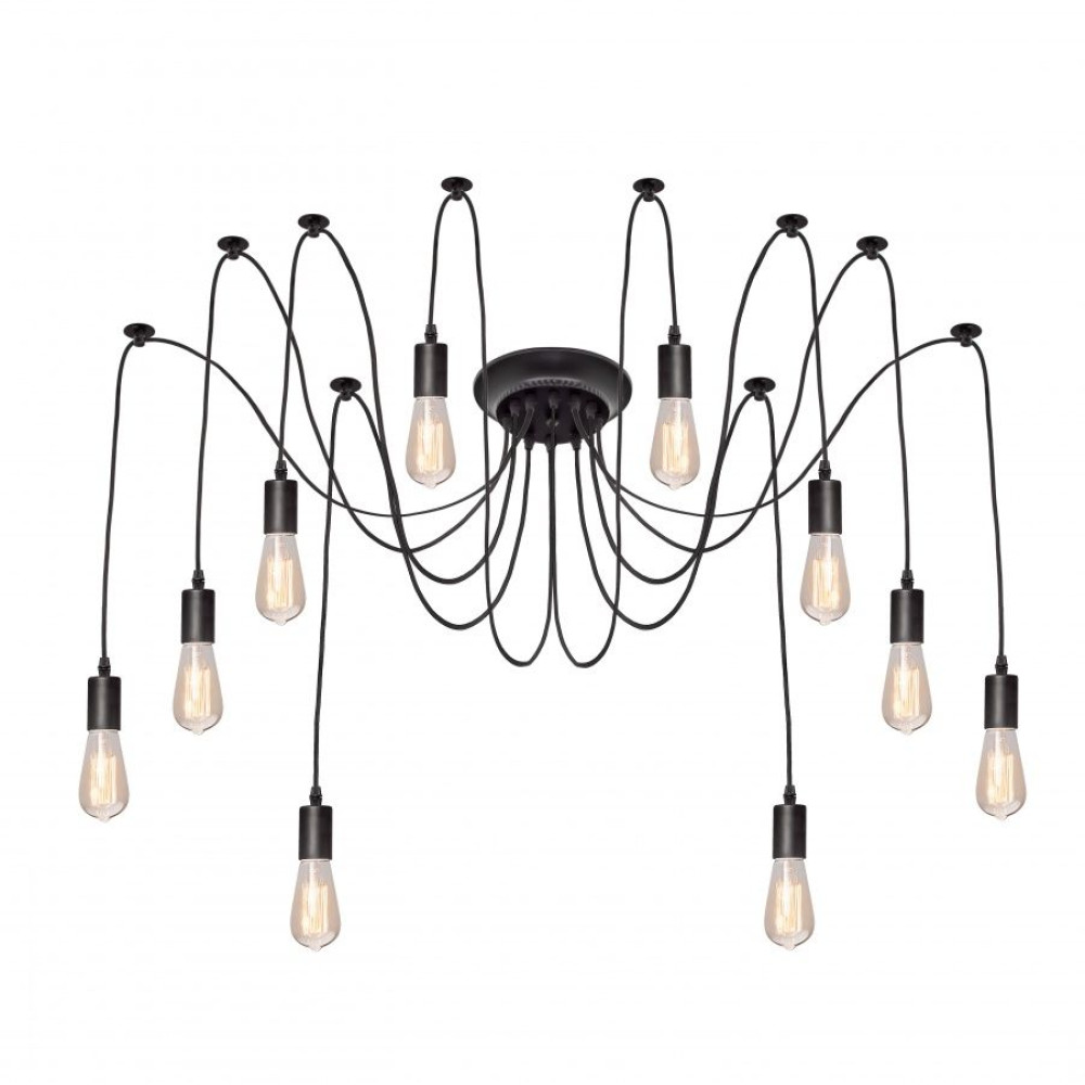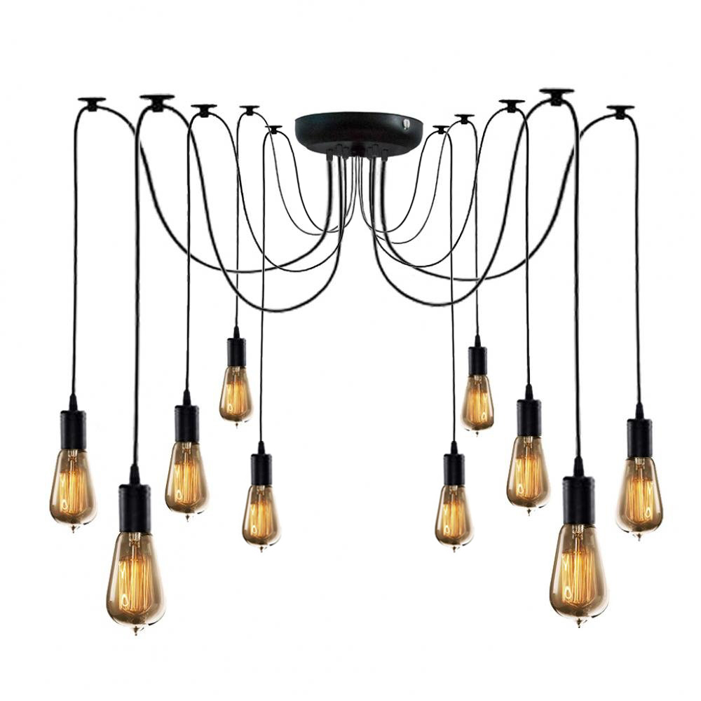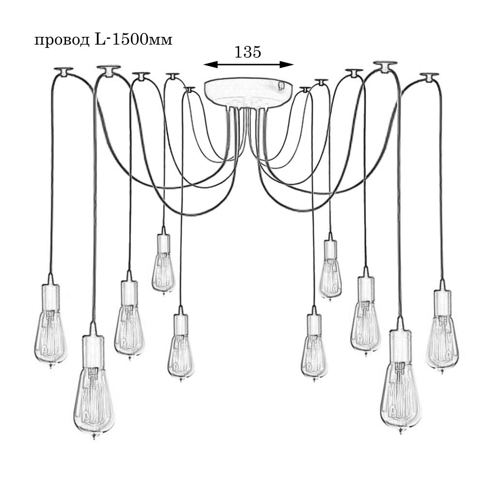 Підвісна люстра-павук у стилі лофт на десять ламп без плафонів, під лампу Е27.