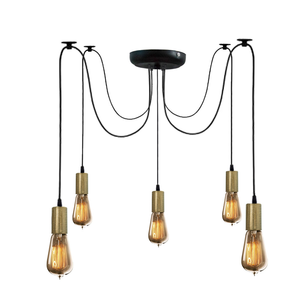 Підвісна люстра-павук у стилі лофт на п'ять ламп без плафонів, під лампу Е27.
