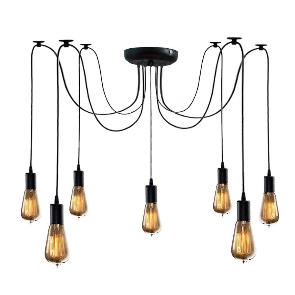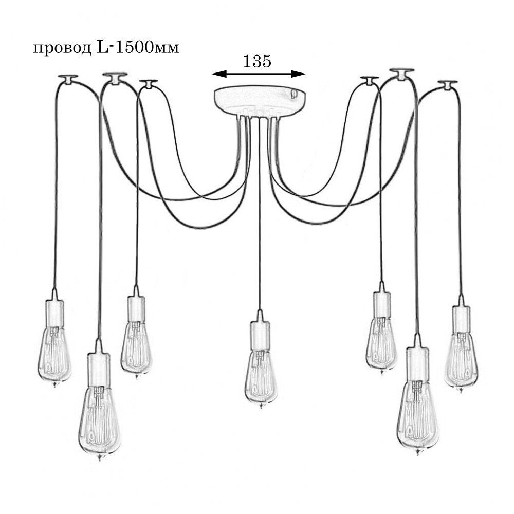 Підвісна люстра-павук у стилі лофт на сім ламп без плафонів, під лампу Е27.