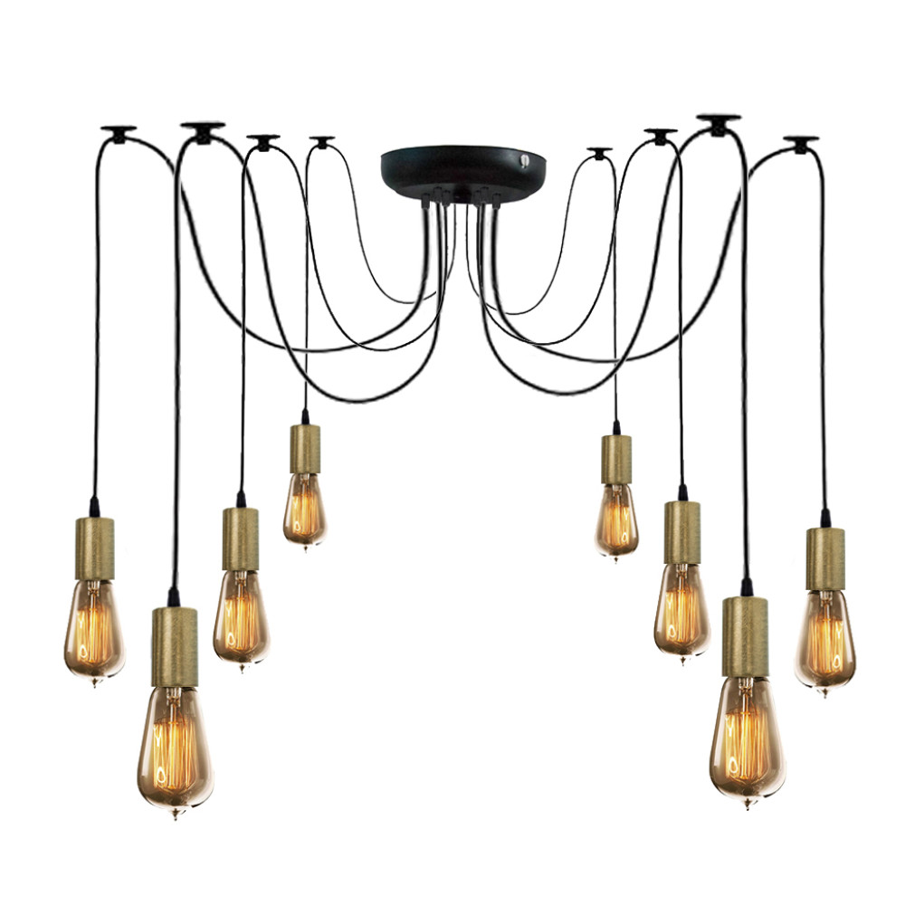 Як джерело світла служать ретро лампи. Люстри павуки на 8 лапок чудово вписуються в індустріальний стиль оформлення інтер'єрів. Люстри павуки у стилі лофт – це відмінне рішення для освітлення простору як бутіків, ресторанів, кафе, так і квартири, будинки. Широко використовується люстри павуки завдяки можливості регулювання довжини дроту, а значить ступеня та рівня освітленості.