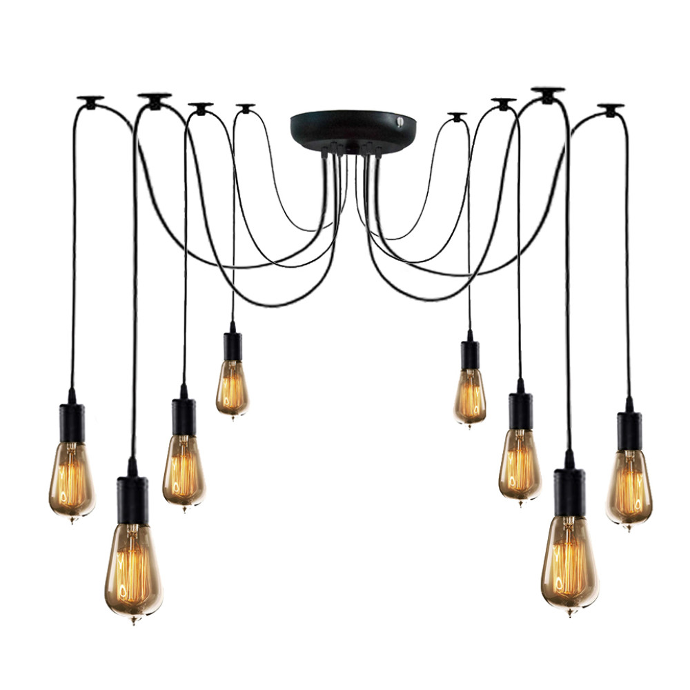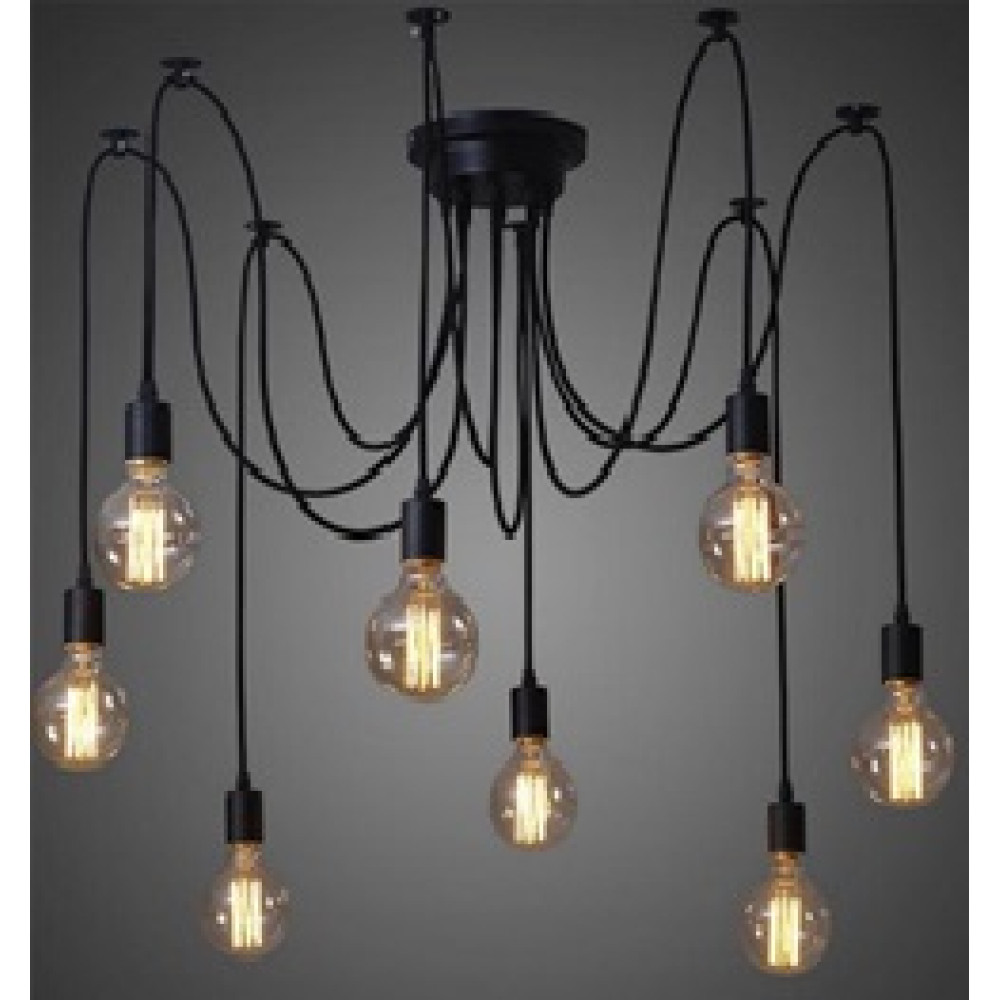Як джерело світла служать ретро лампи. Люстри павуки на 8 лапок чудово вписуються в індустріальний стиль оформлення інтер'єрів. Люстри павуки у стилі лофт – це відмінне рішення для освітлення простору як бутіків, ресторанів, кафе, так і квартири, будинки. Широко використовується люстри павуки завдяки можливості регулювання довжини дроту, а значить ступеня та рівня освітленості.