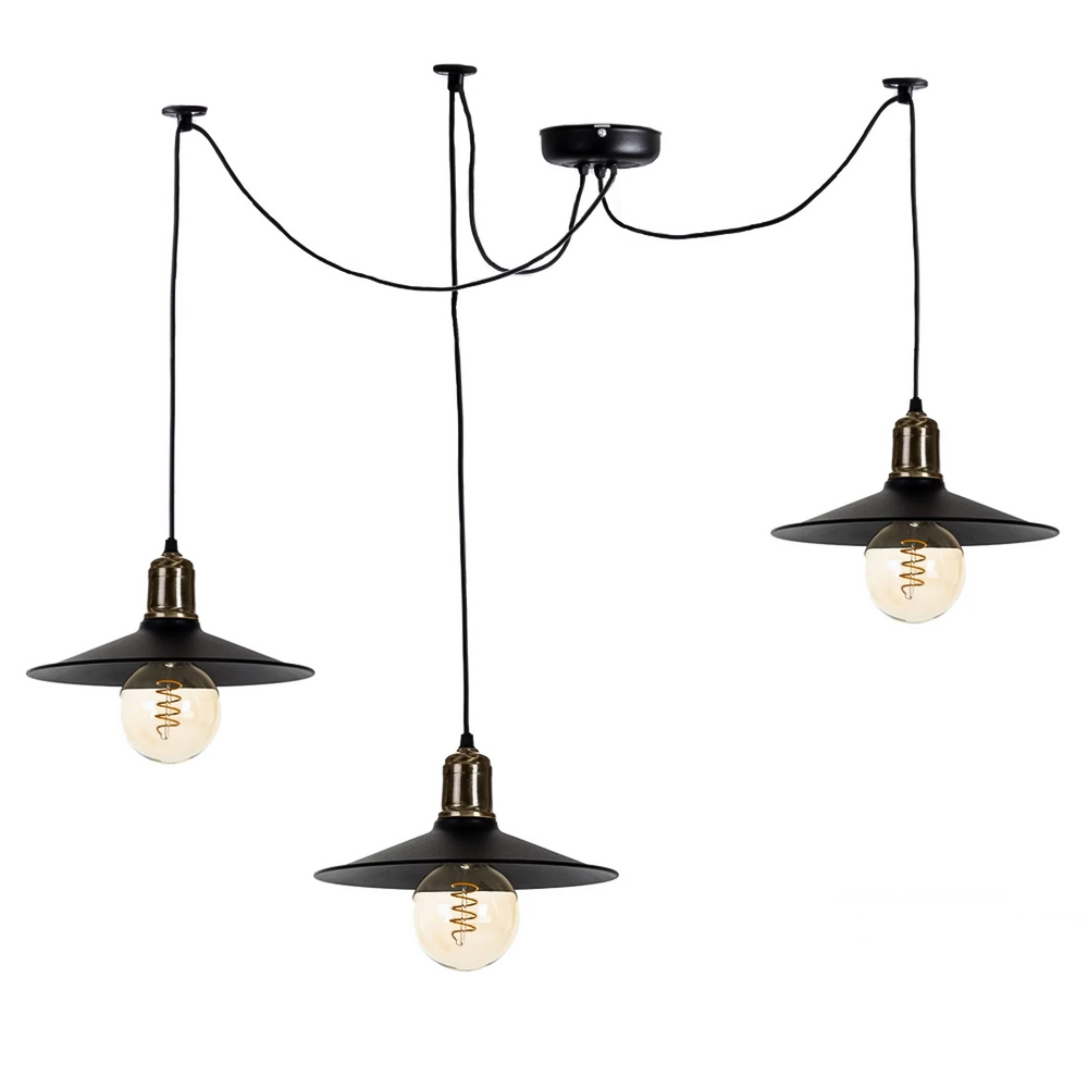 Підвісна люстра павук оснащена металевими плафонами чорного кольору. Дизайн світильника ідеально вписується в стиль лофт.