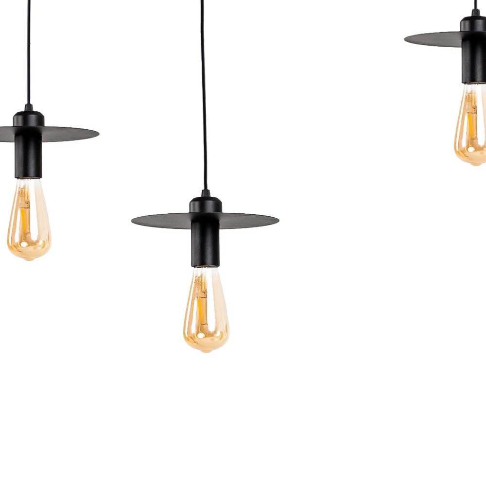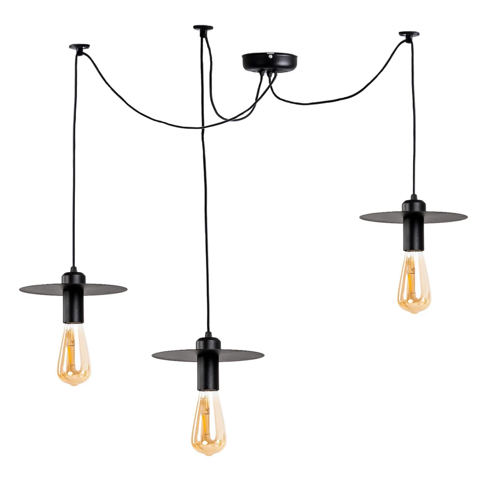 Підвісна люстра павук оснащена металевими плафонами чорного кольору. Дизайн світильника ідеально вписується в стиль лофт.