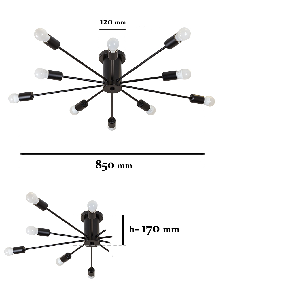 Немає відгуків про товар Люстра павук стельова без плафонів Levistella лофт 7529901-10 BK чорна