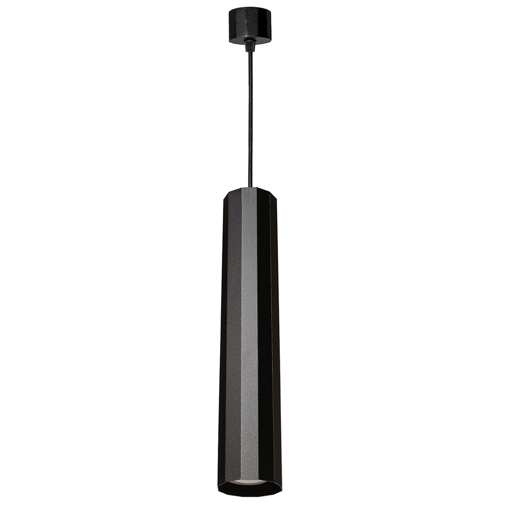 Сучасна підвісна люстра на одну лампу з металевим плафоном у стилі лофт. Плафон має форму циліндра з чіткими гранями, що надає шарму та елегантності вашому простору.