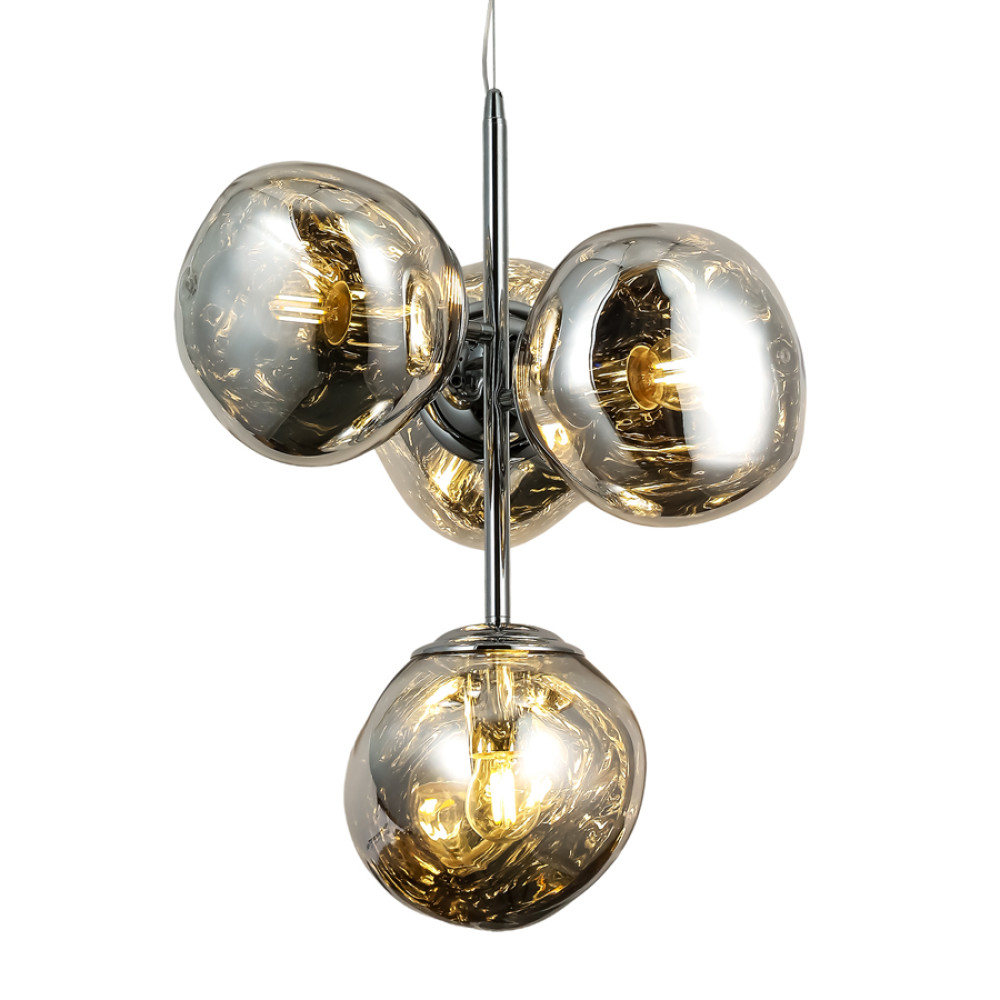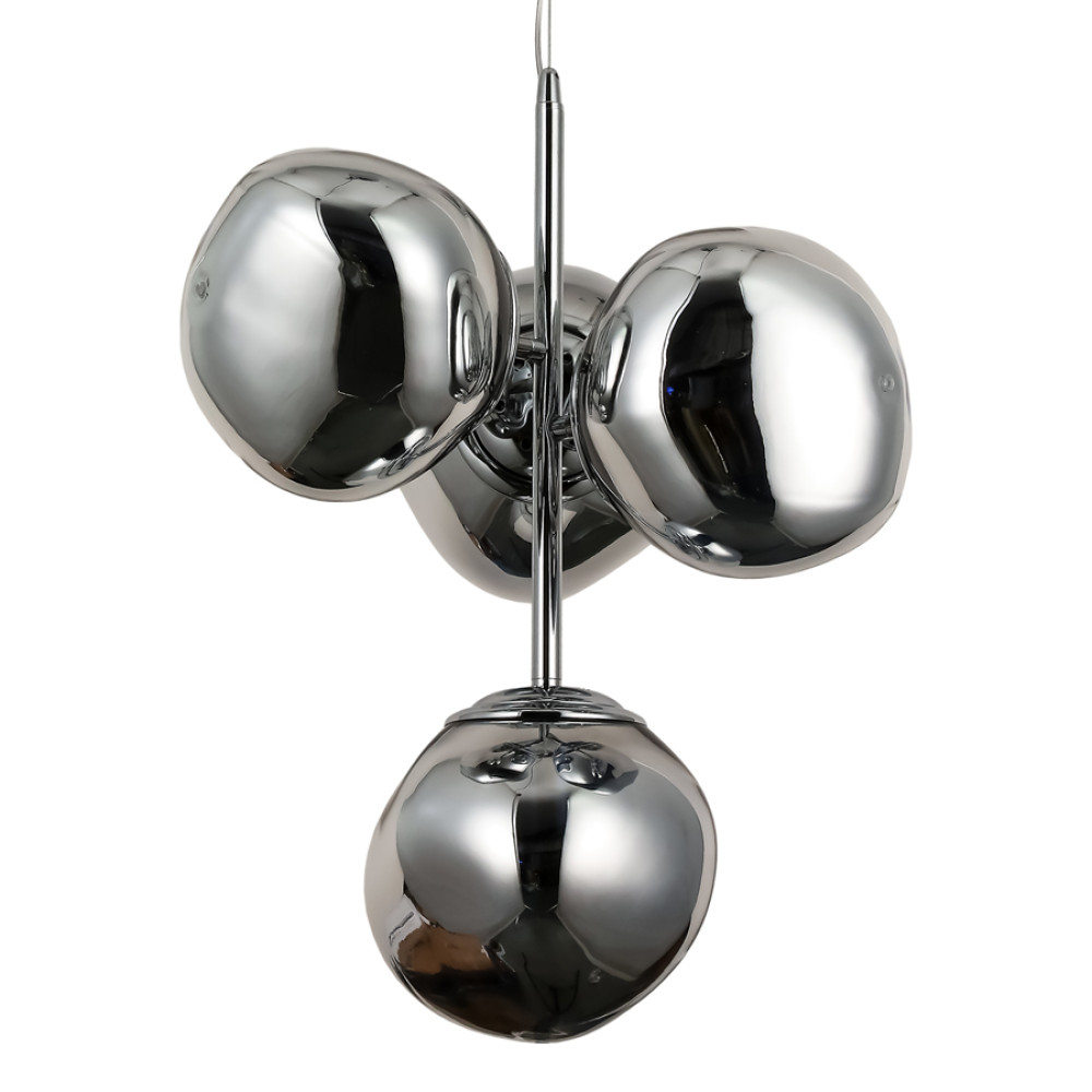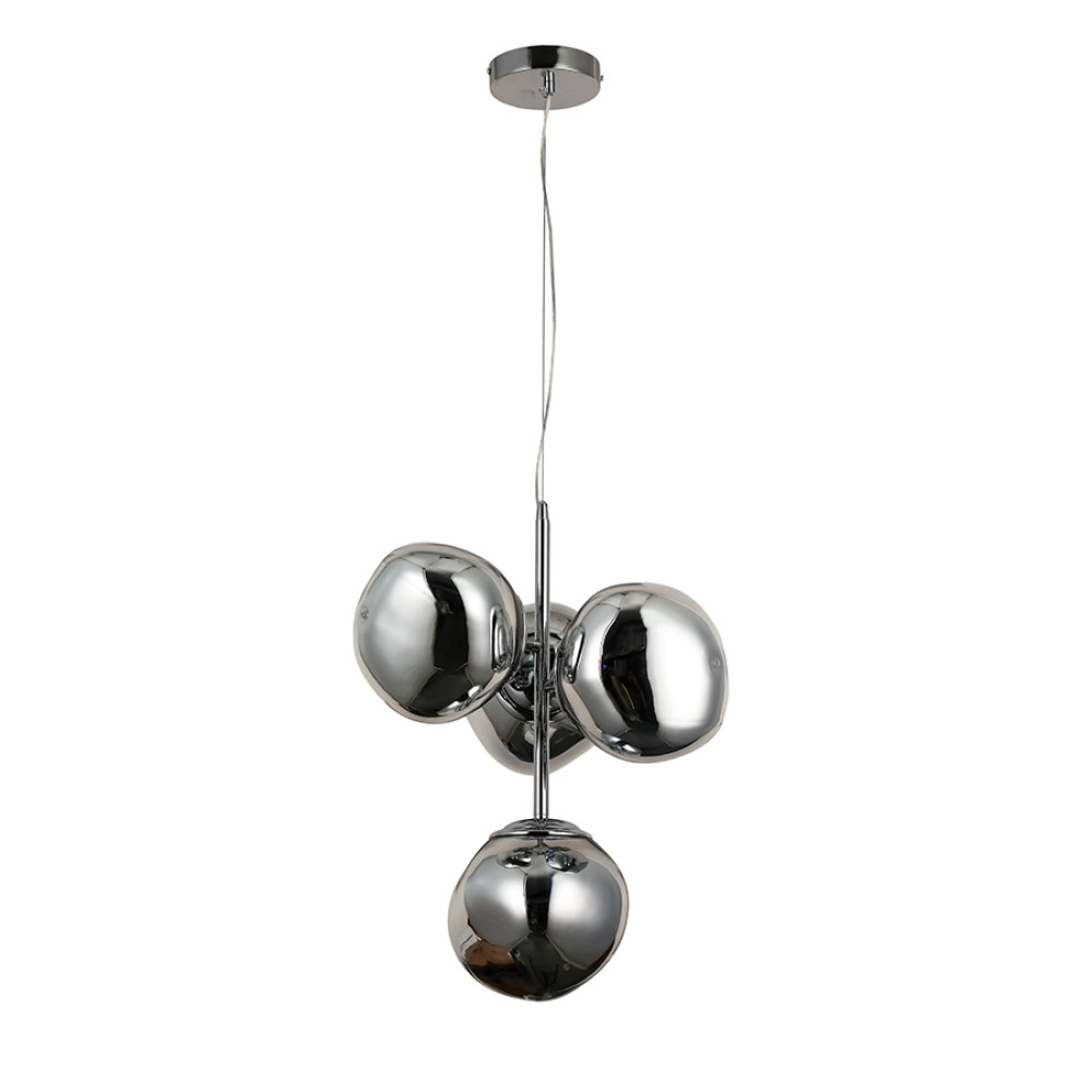 Найкраще ця люстра підійде для освітлення до 12 м² приміщення, при використанні лампочок 6 Вт (LED) або 40 Вт (стандартна). Ця вишукана люстра, що привертає увагу сучасним дизайном. Виконана з якісного металу, вона поєднує блискучий хромовий корпус та глянсові плафони, ідеально підходячи для їдалень, віталень або великих холів.