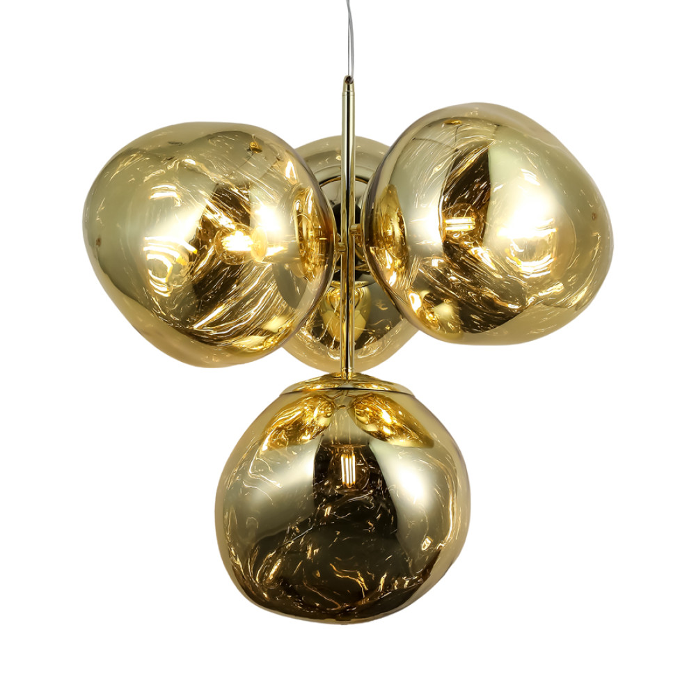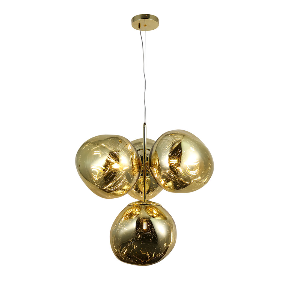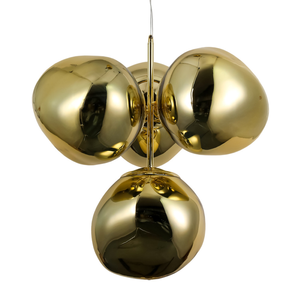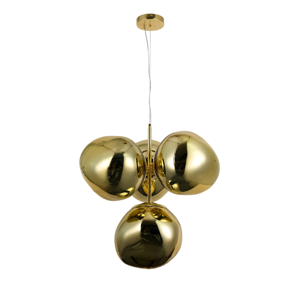 Найкраще ця люстра підійде для освітлення до 12 м² приміщення, при використанні лампочок 6 Вт (LED) або 40 Вт (стандартна). Ця вишукана люстра, що привертає увагу сучасним дизайном. Виконана з якісного металу, вона поєднує блискучий золотий корпус та глянсові плафони, ідеально підходячи для їдалень, віталень або великих холів.