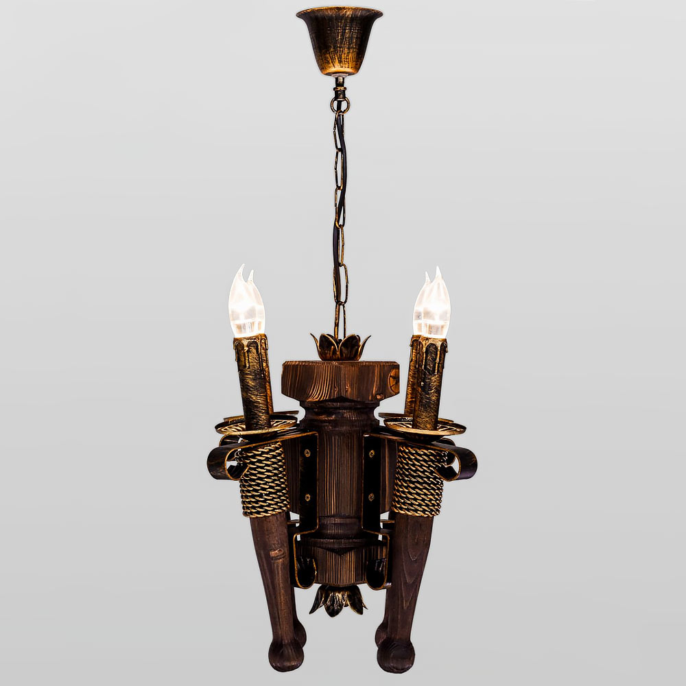 Люстра підвісна дерев'яна свічки Light House DL-19925/4 колір бронза + коричневий