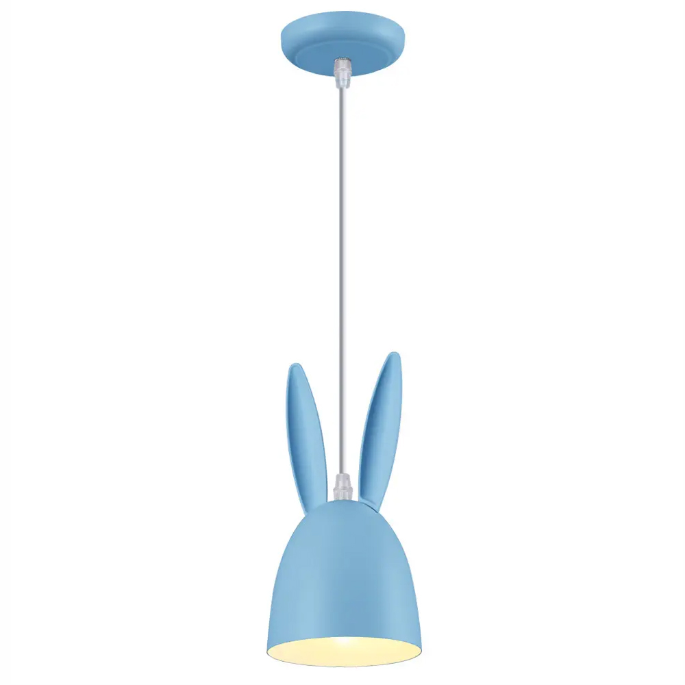 Дитяча декоративна підвісна люстра на одну лампу з плафоном із пластику у вигляді купола із заячими вушками.