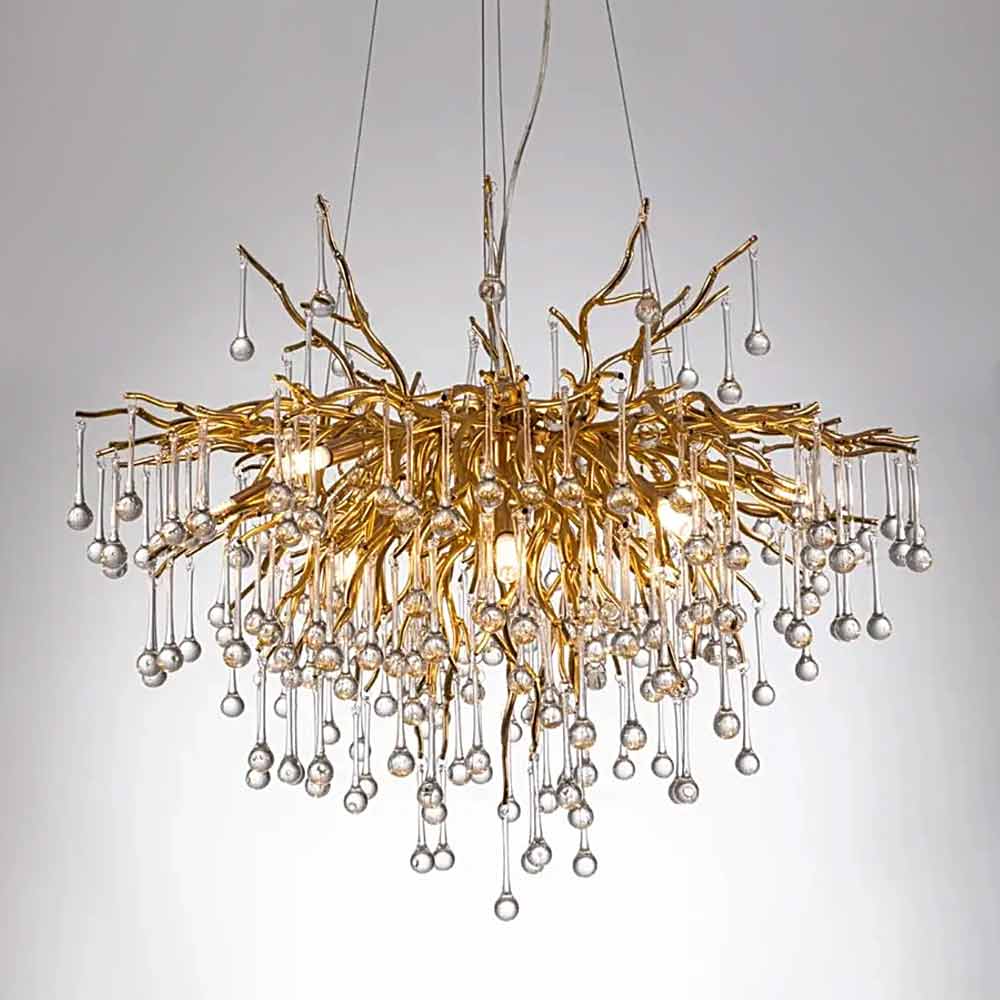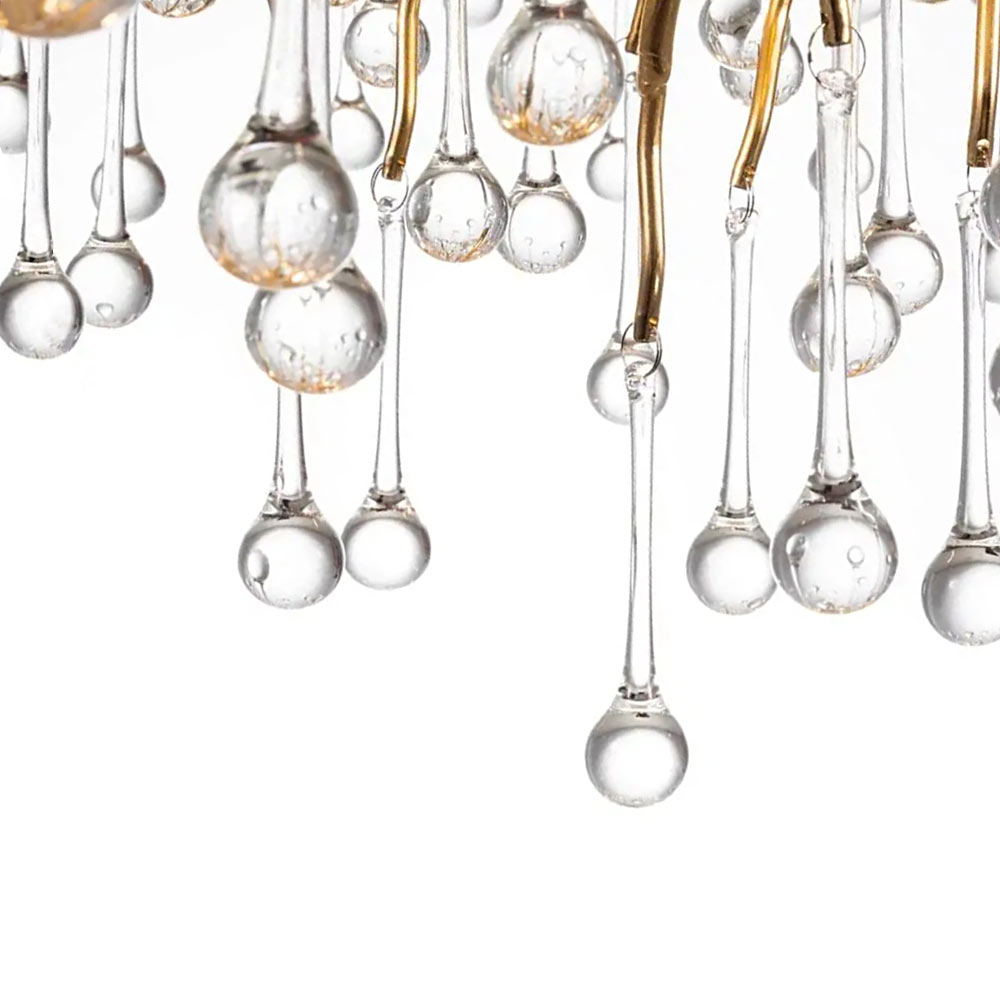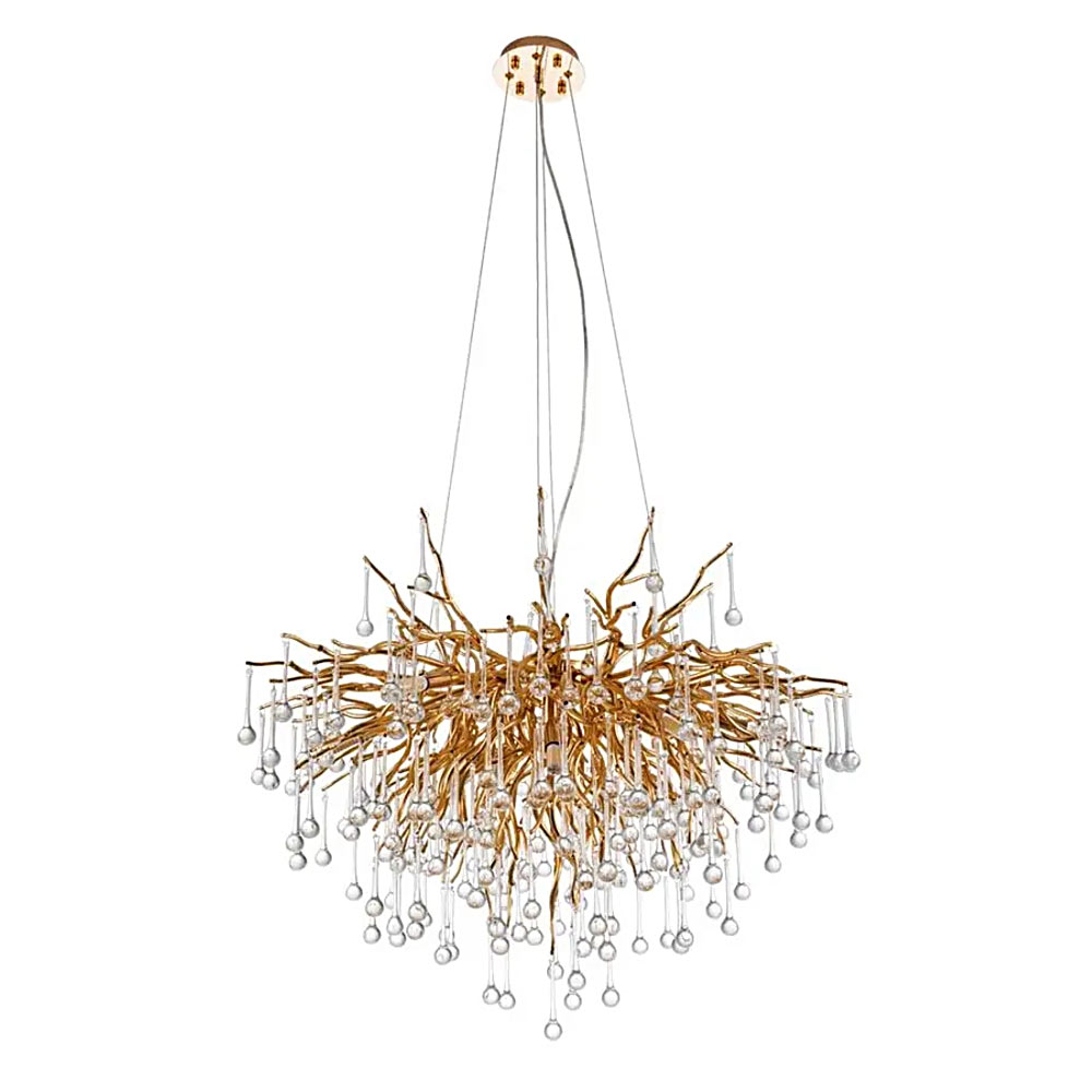 1. Елегантний дизайн: Золота основа люстри разом із кришталевими елементами створює вишуканий стиль, який підкреслить розкіш будь-якого приміщення.
