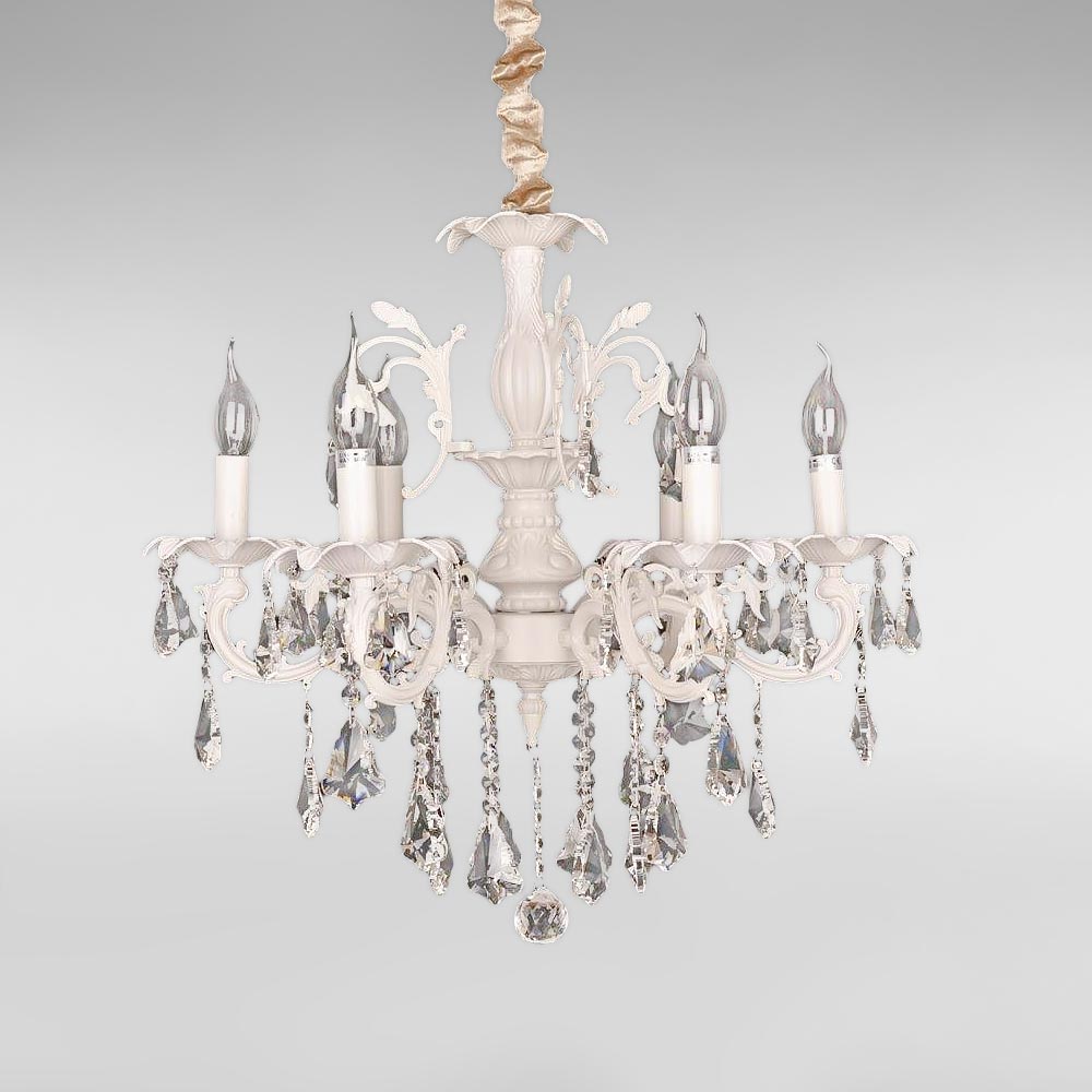 Люстра підвісна класична кришталева свічки Light House SD-18380/6A SWH D600*H600 E14*6 біла