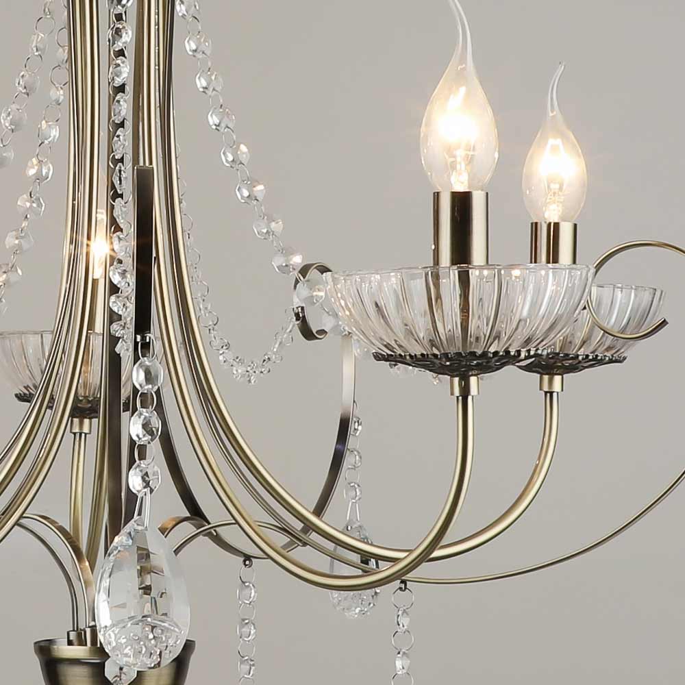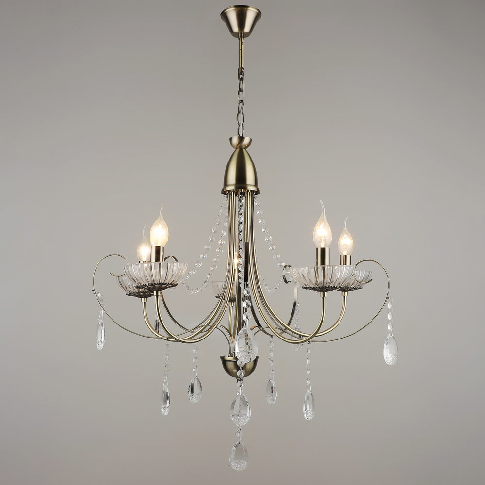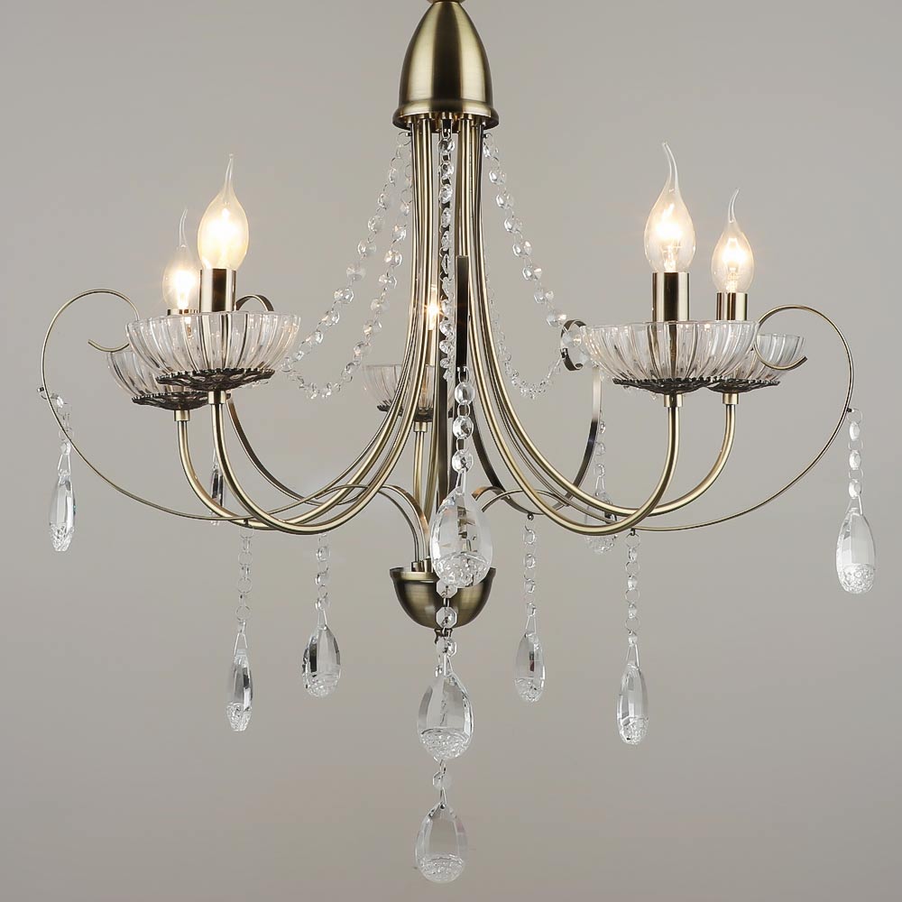 Класична підвісна люстра на п'ять ламп у вигляді свічника з підвісками.