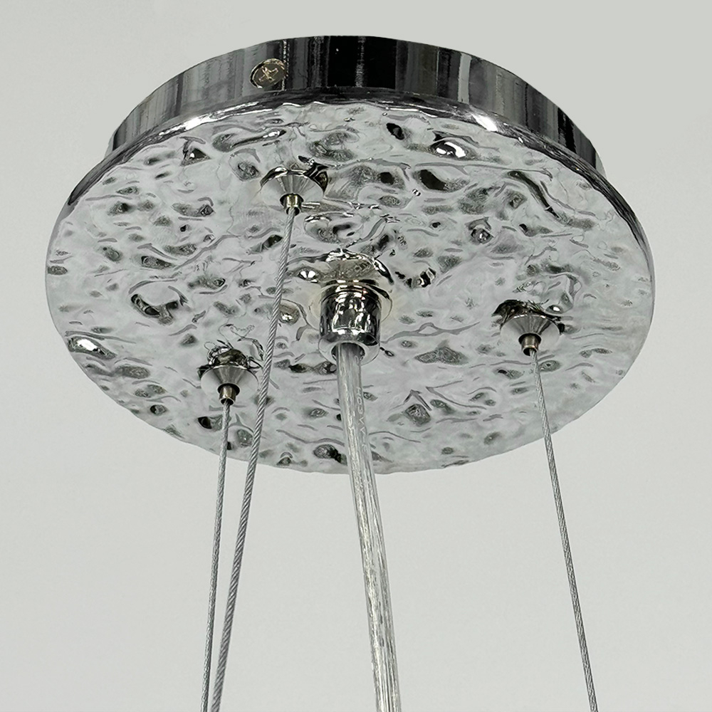 Ця люстра – це втілення елегантності та сучасності у невагомому корпусі з кришталевими підвісами. Корпус люстри виготовлений із металу кольору хром.