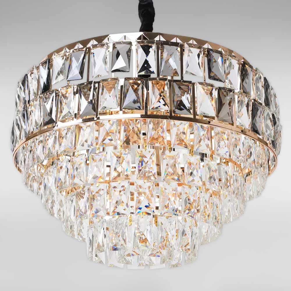Підвісна декоративна кришталева люстра на п'ятнадцять ламп у сучасному стилі.