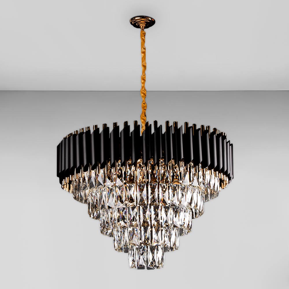 Люстра підвісна кришталева Light House SZ-18487/600 BK+FGD+WT BK+FGD+WT E14*15 чорний із золотом
