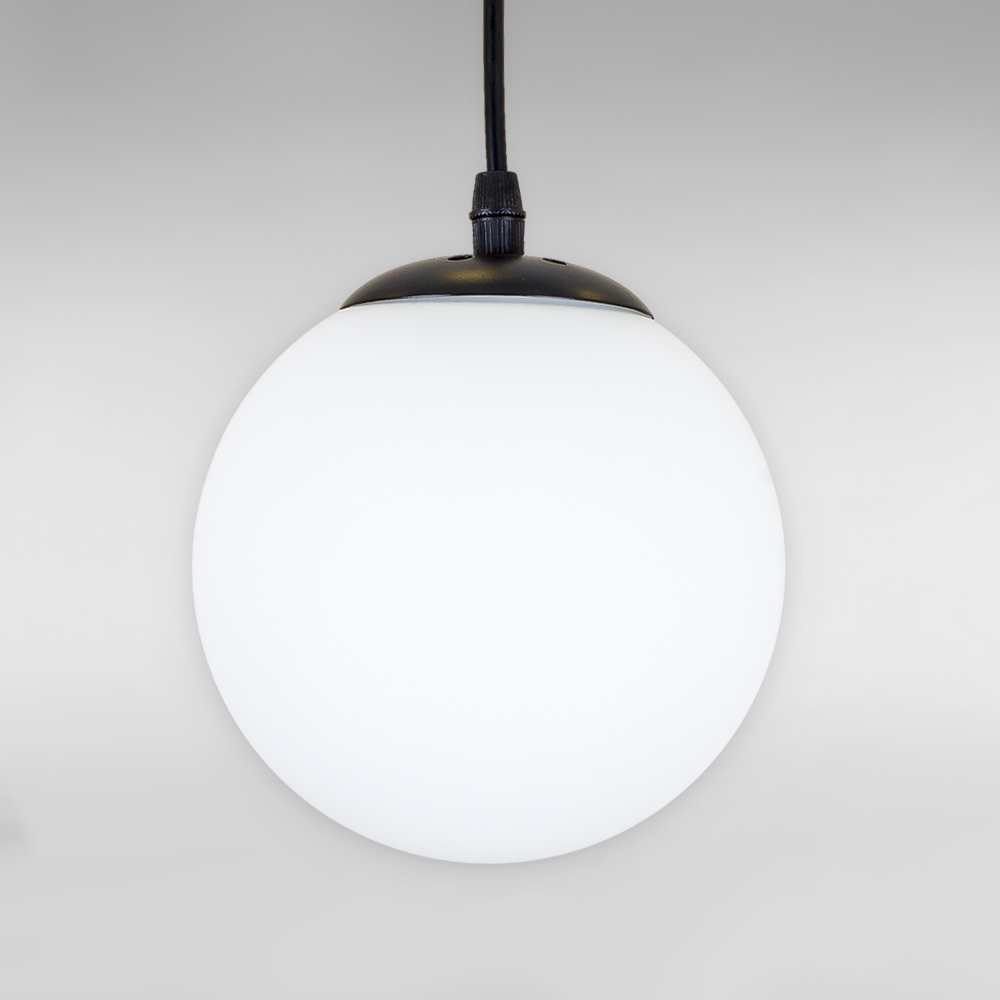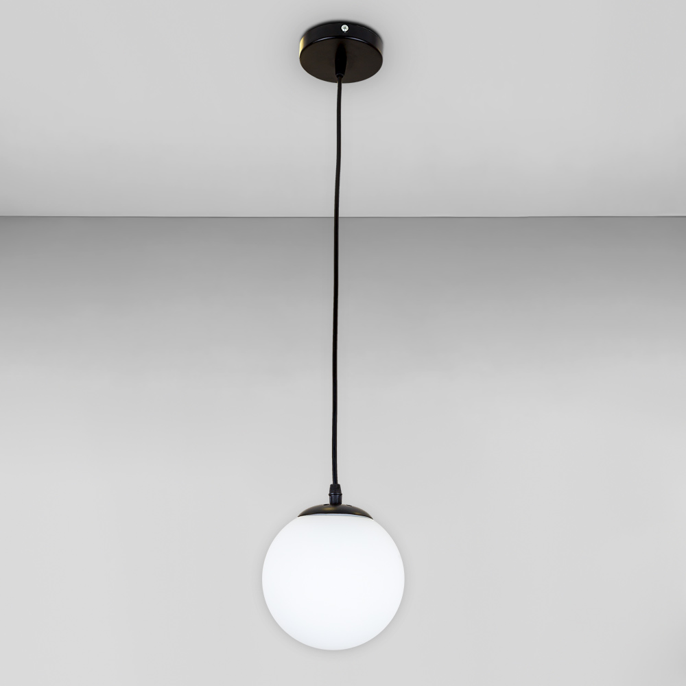 Підвісна люстра на одну лампу в сучасному стилі зі скляним плафоном у вигляді кулі.