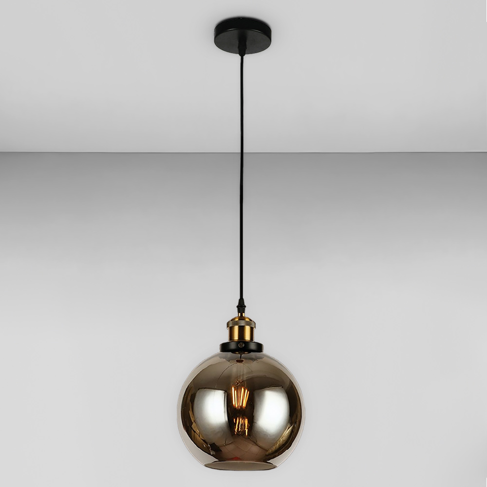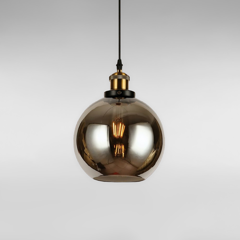Сучасна підвісна люстра в стилі лофт на одну лампу зі скляним плафоном форми кулі.