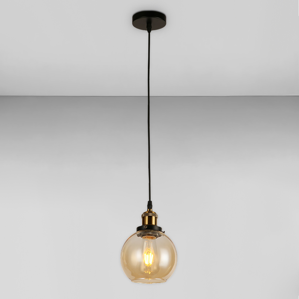 Сучасна підвісна люстра в стилі лофт на одну лампу зі скляним плафоном форми кулі.