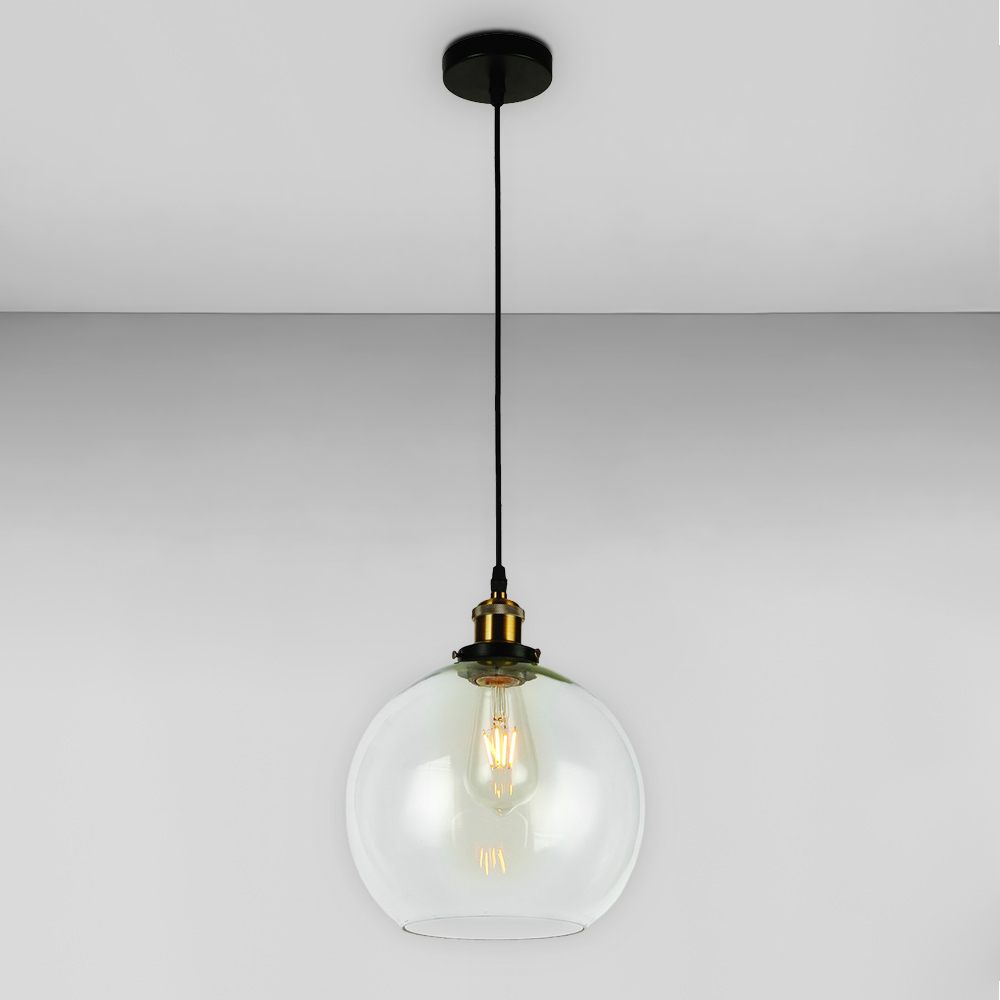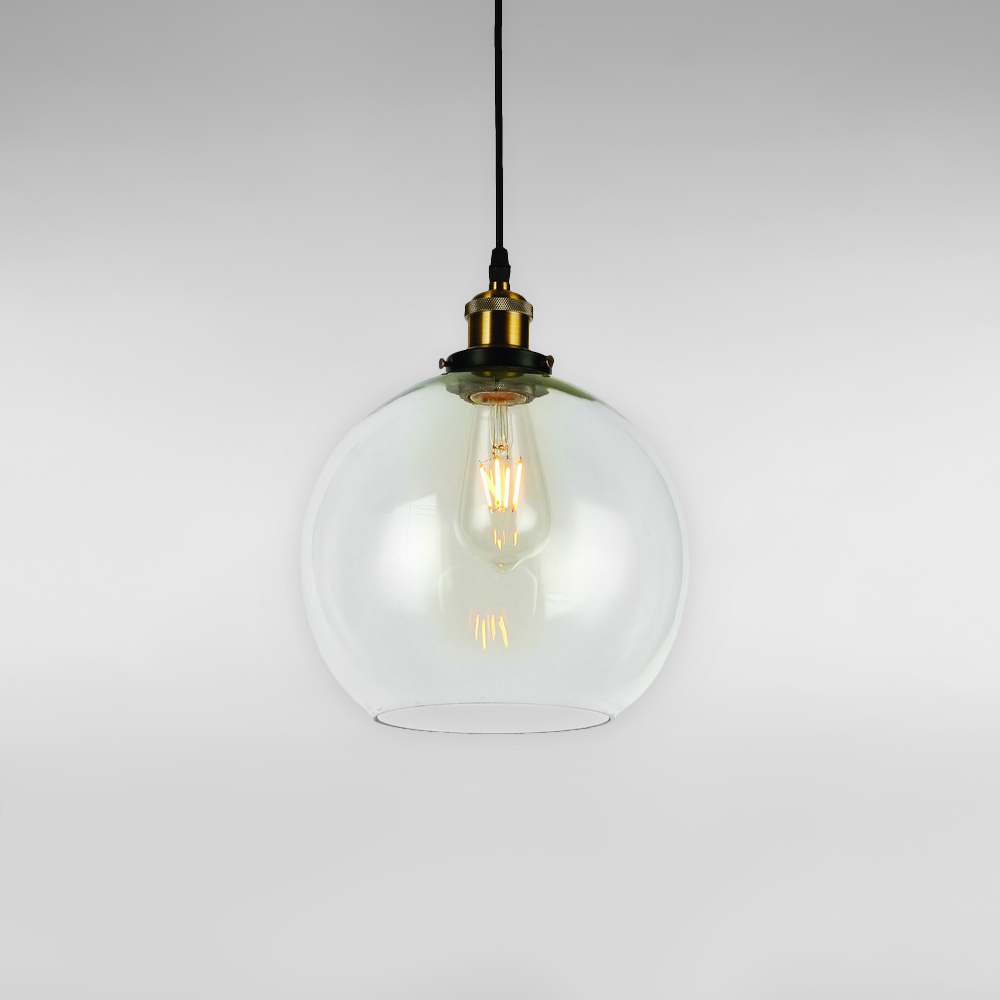 Сучасна підвісна люстра в стилі лофт на одну лампу зі скляним плафоном форми кулі.