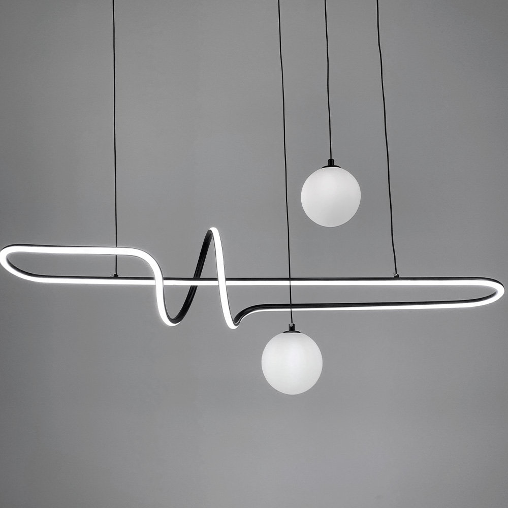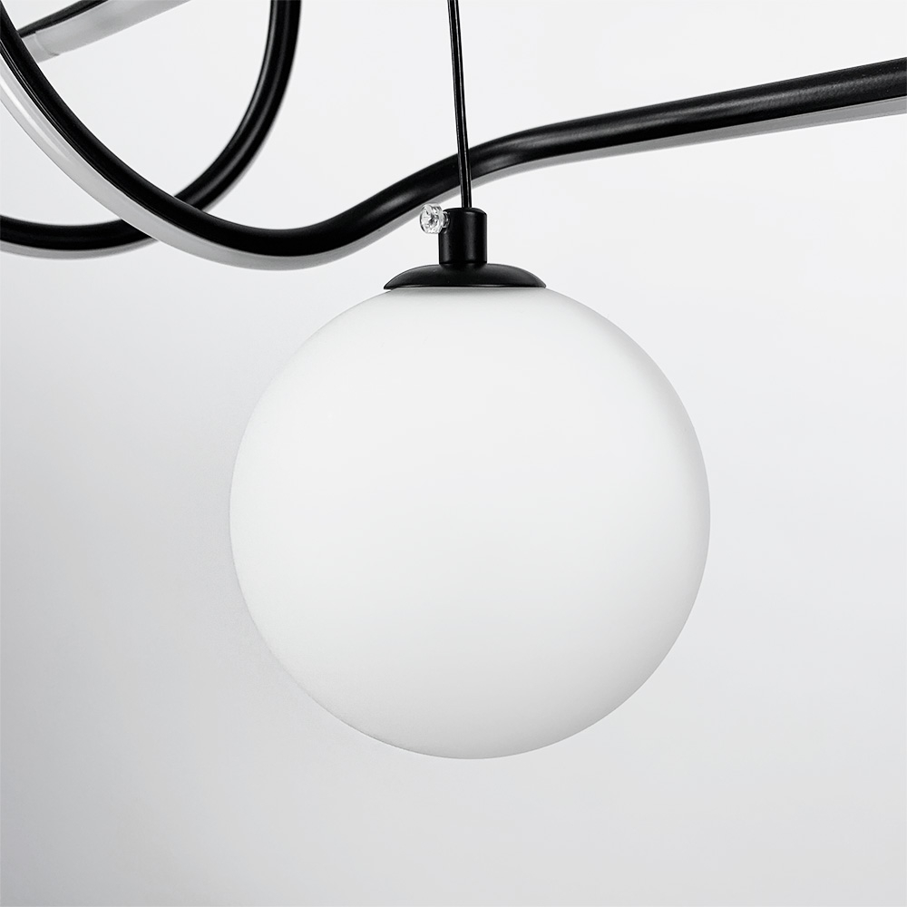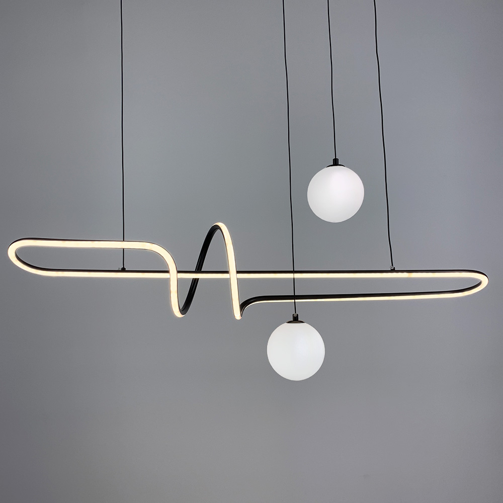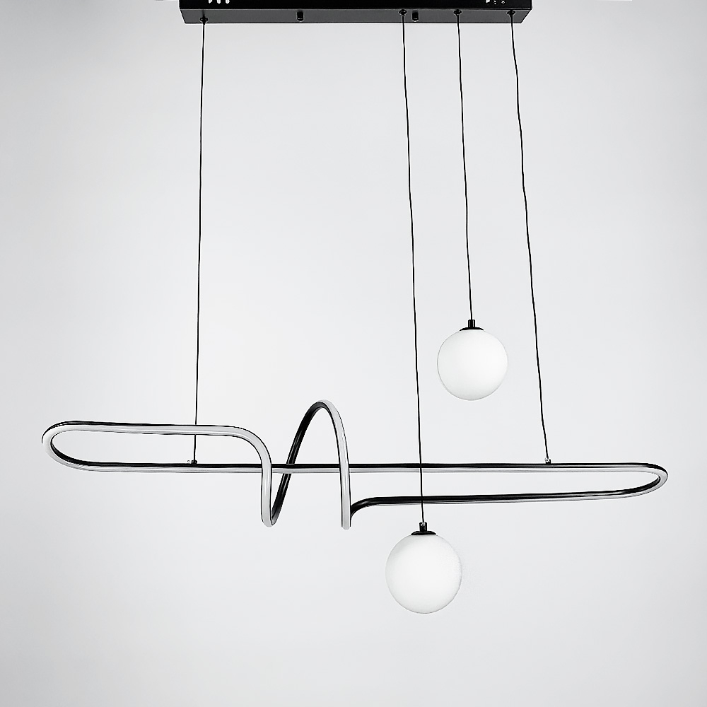 Закручена декоративна LED люстра у скандинавському стилі з двома плафонами під лампу G9. Корпус люстри виконаний із металу в чорному кольорі.