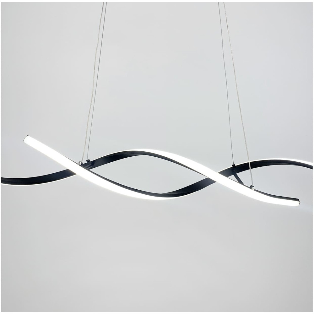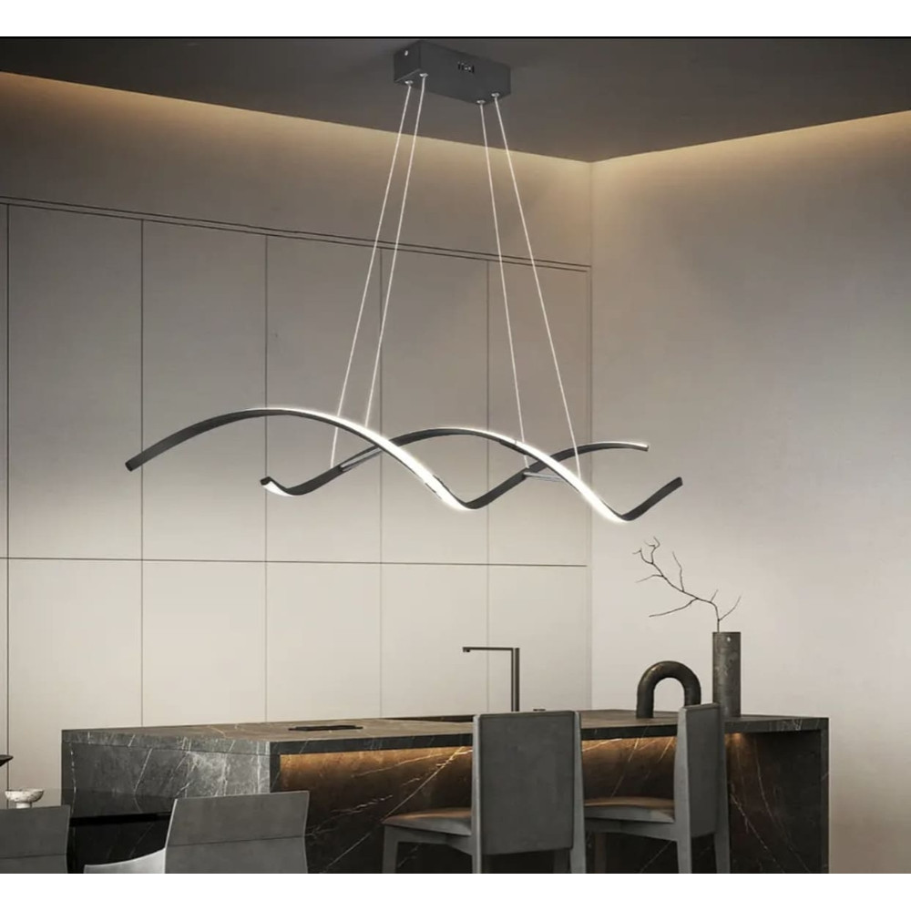 Сучасна світлодіодна подовжена підвісна люстра у чорному металевому каркасі довжиною 100 см. Ширина корпусу – 12 см. Люстра має 3 режими освітлення. Потужність 47 Вт (24 Вт тепле та холодне світло)