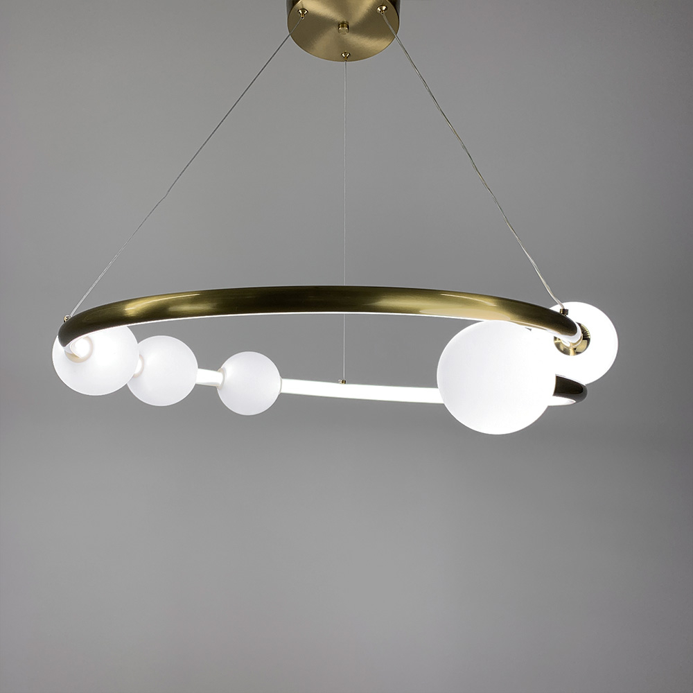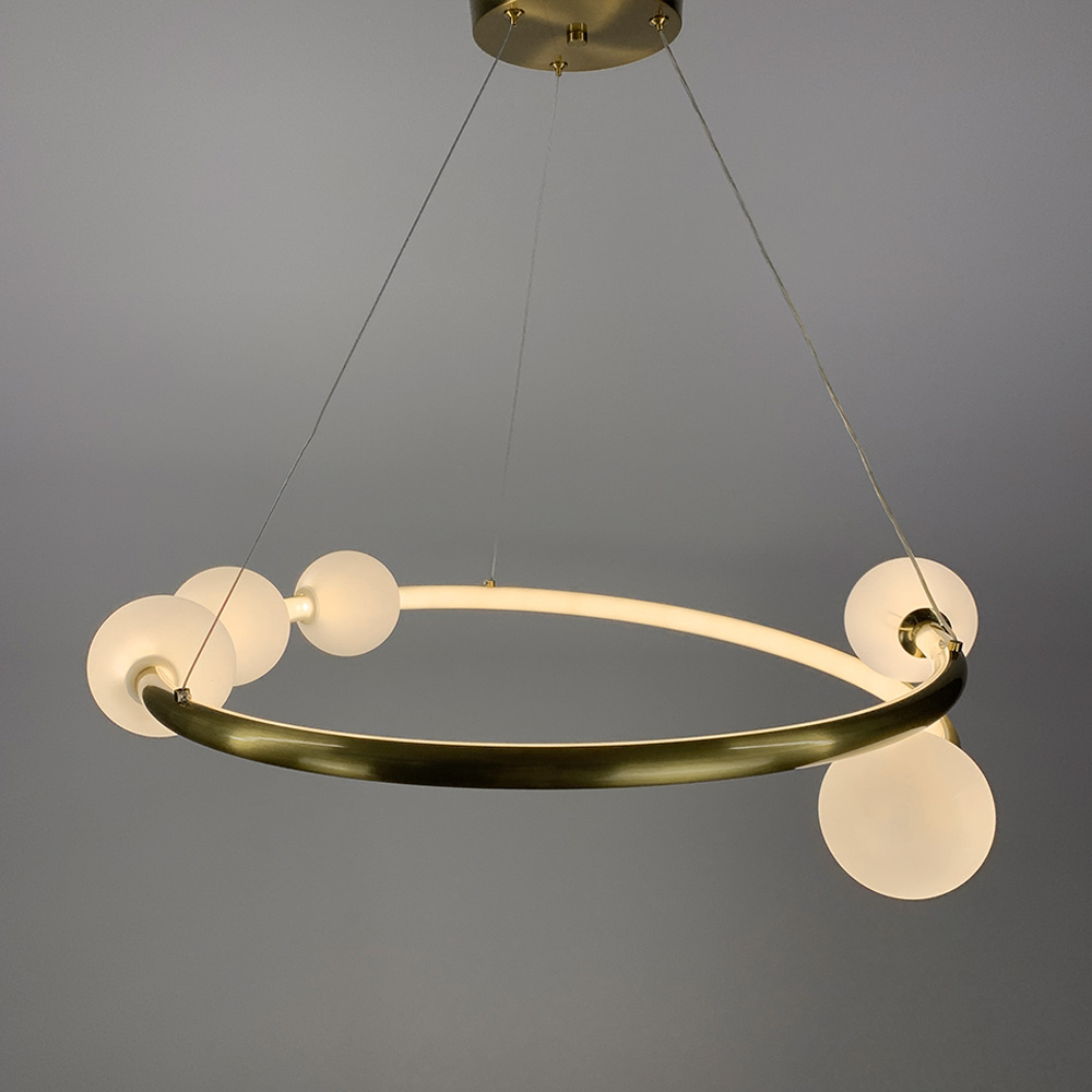 Люстра підвісна LED Light House LNF-17451 47W Ø 65 см, колір латунь з акриловими кульками у вигляді кільця