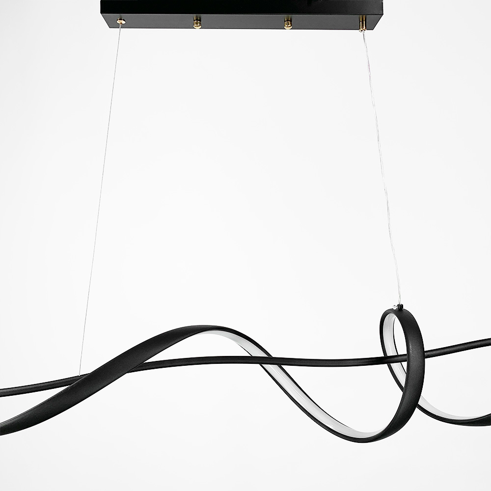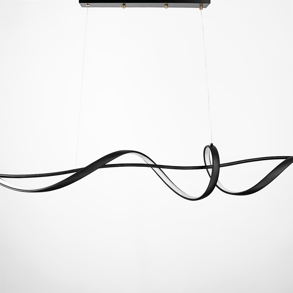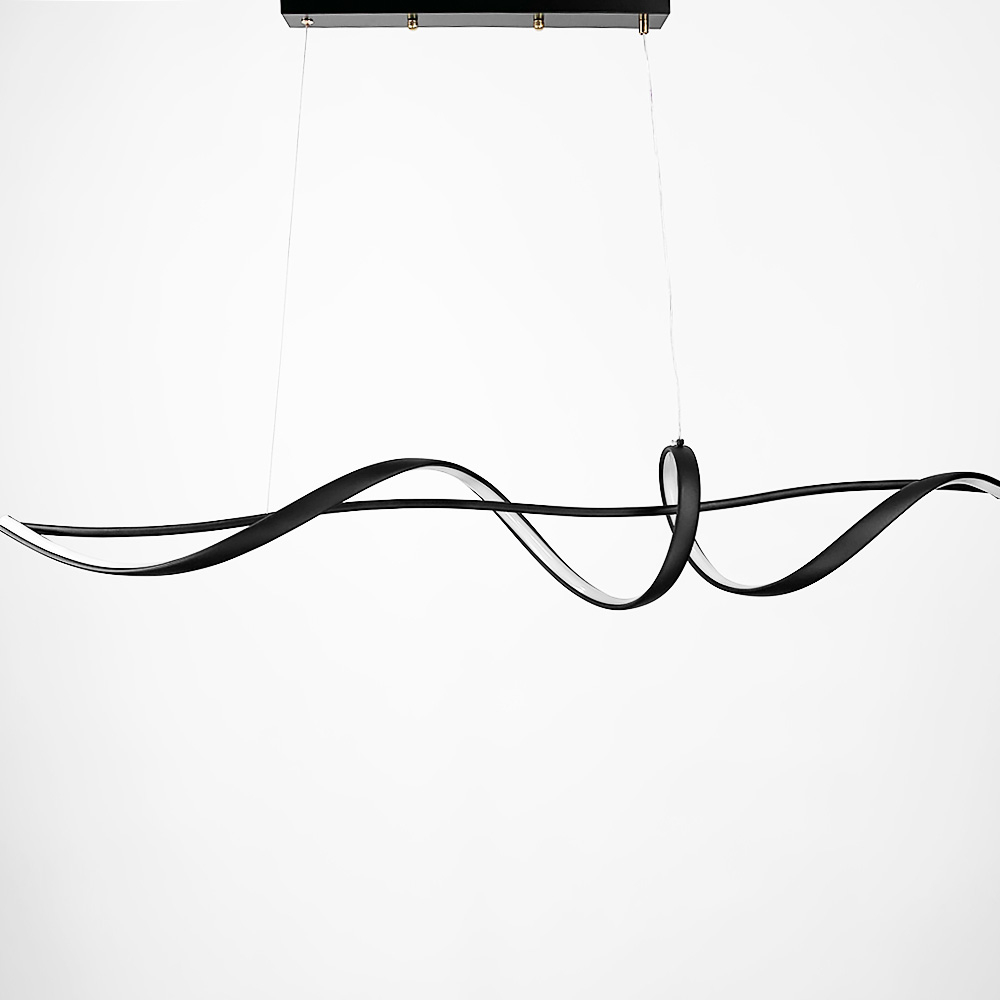Підвісна подовжена хвилеподібна LED люстра у чорному корпусі 120 см.