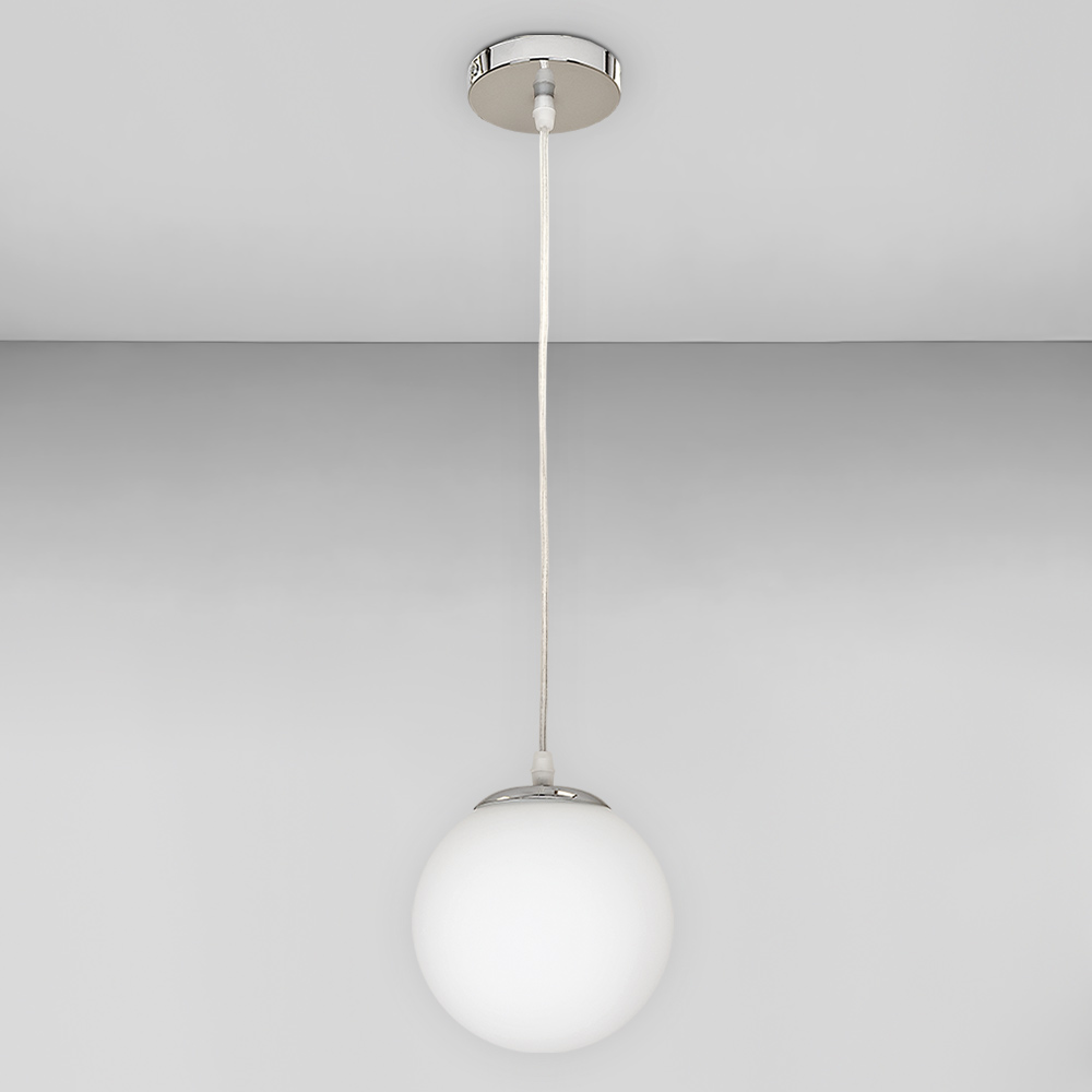 Сучасна підвісна люстра в стилі Лофт на одну лампу зі скляним плафоном у вигляді куль.