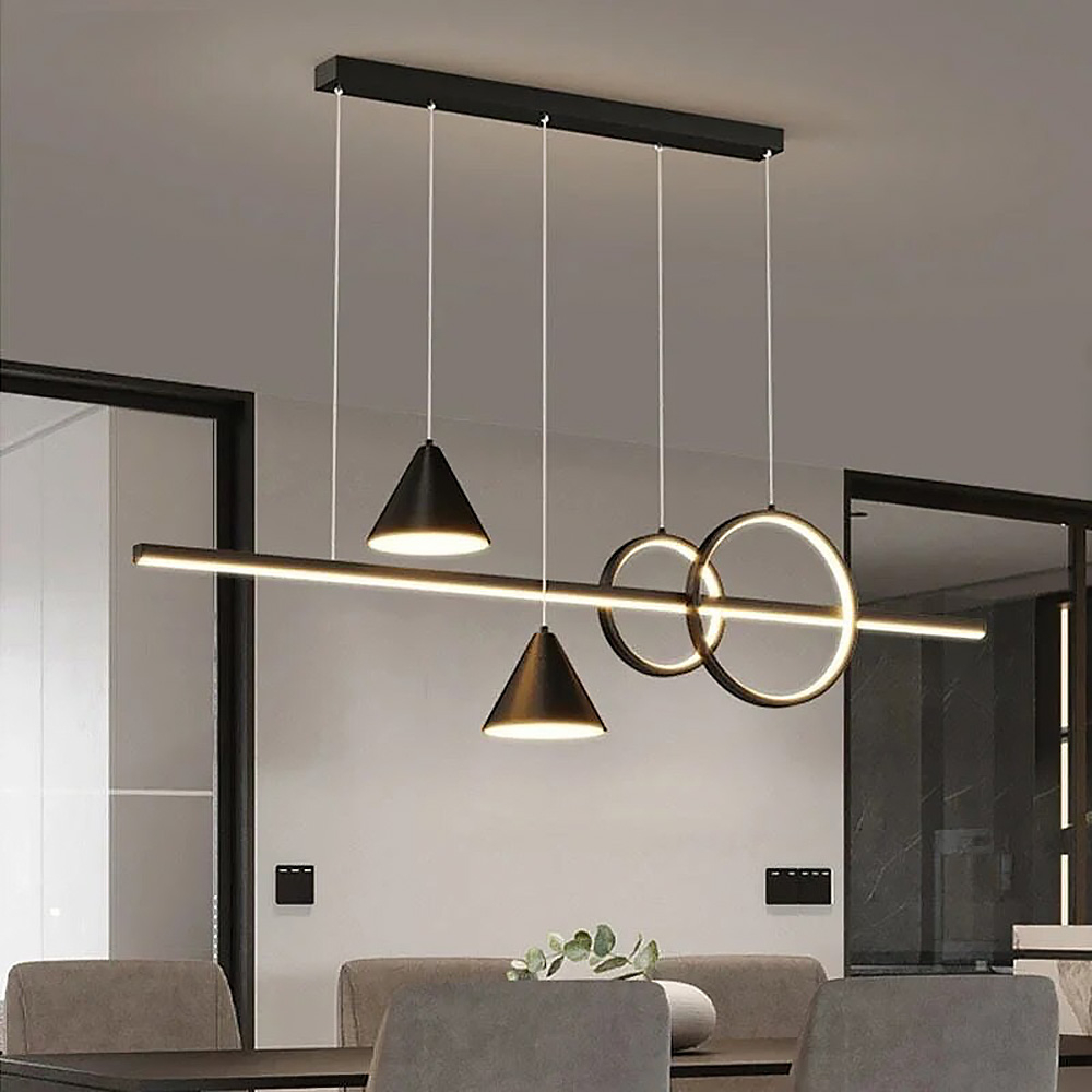 Немає відгуків про товар Люстра підвісна Light House LNF-17422 100 см чорна з 2 світлодіодними колами 30Вт та з 2 конусними плафонами