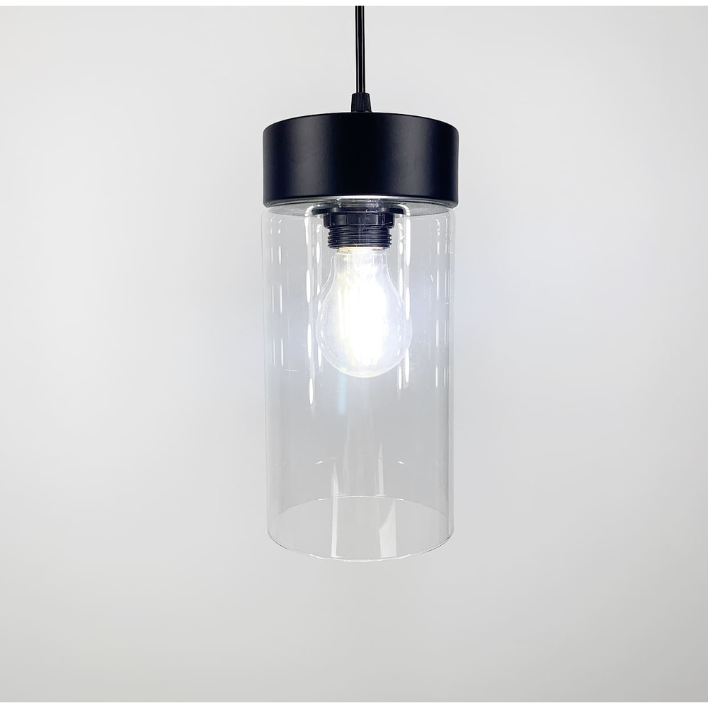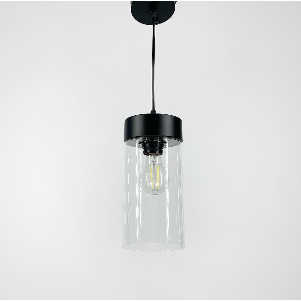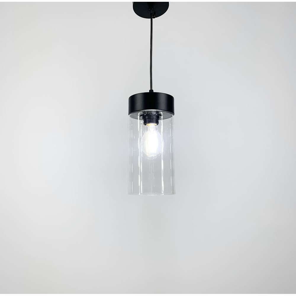Сучасна підвісна люстра у стилі лофт на одну лампу зі скляним плафоном форми циліндра.