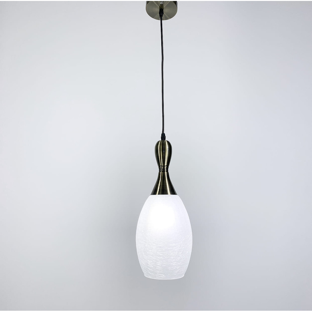 Сучасна підвісна люстра на одну лампу зі скляним декоративним плафоном.