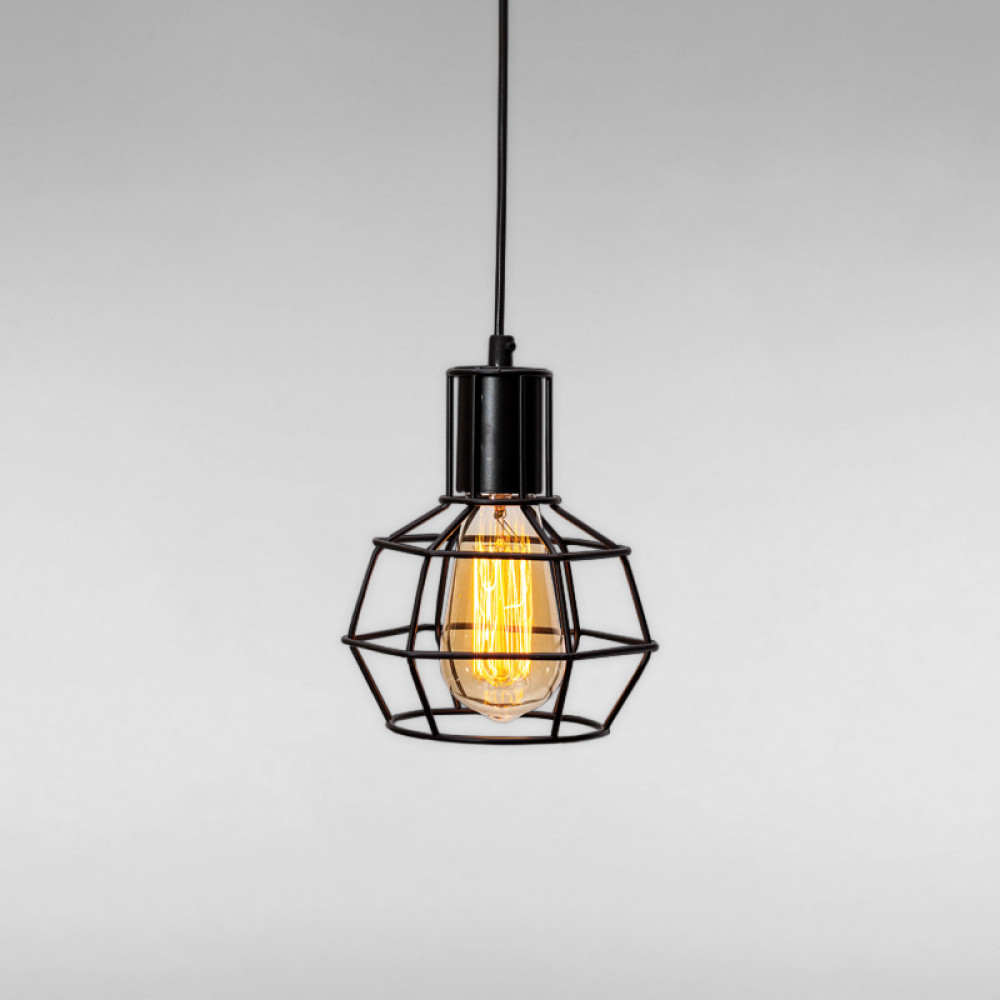 Підвісна люстра на одну лампу в стилі лофт з плафоном у вигляді клітки.