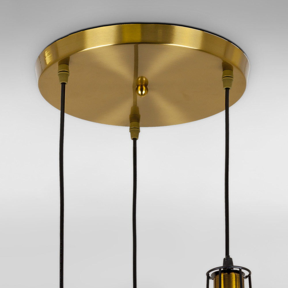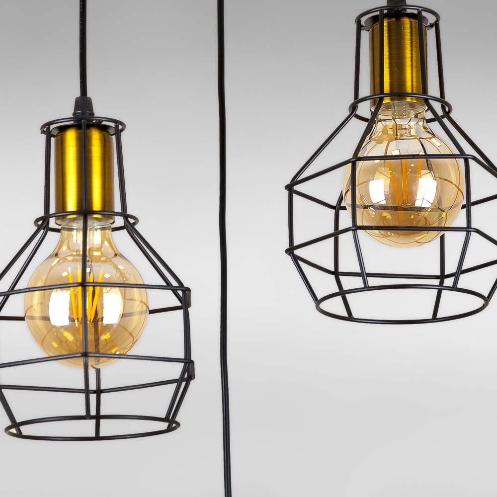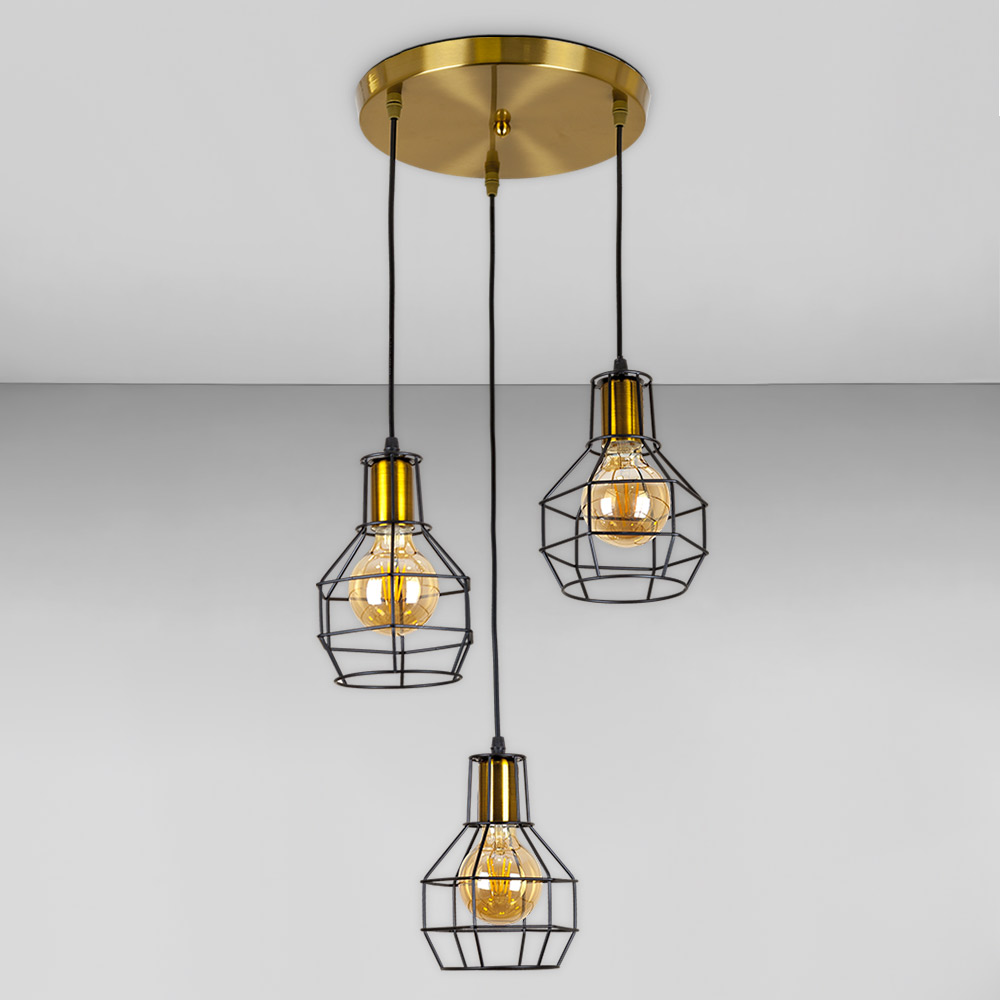 Сучасна підвісна люстра в стилі лофт на три лампи з плафонами у вигляді металевої клітки.
