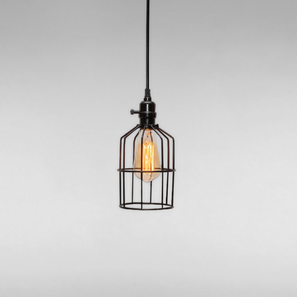 Підвісна люстра на одну лампу в стилі лофт з плафоном у вигляді клітки.