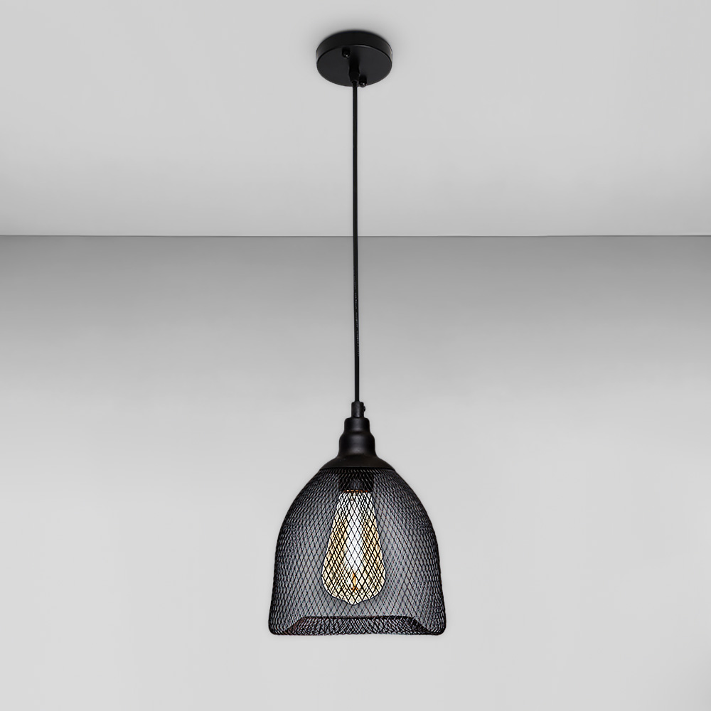Підвісна люстра на одну лампу в сучасному стилі з плафоном із металевої сітки.